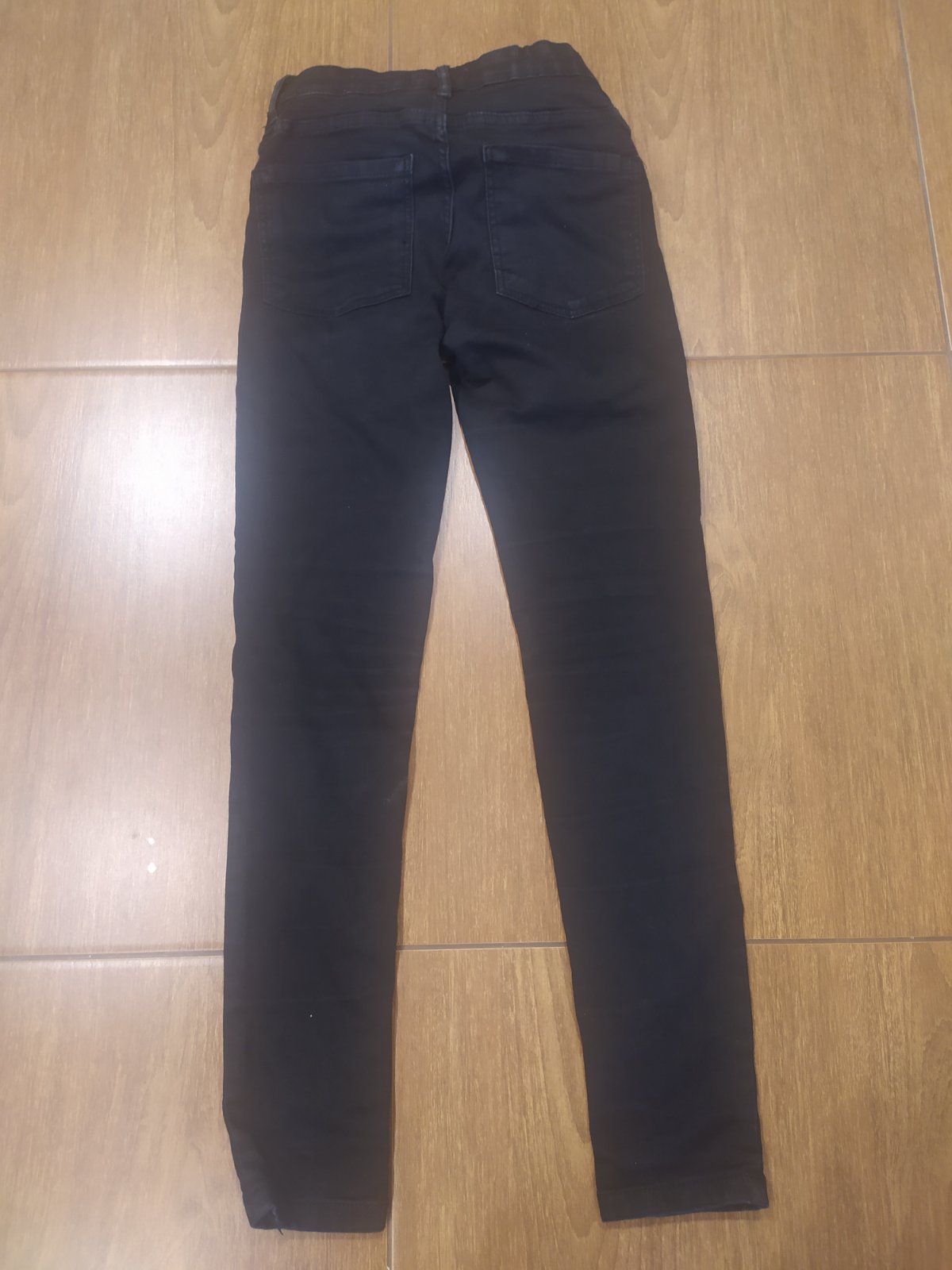 pár krát oblečené, veľmi moderné rifle so sťahovaním na gumu v páse, elastické. Rozmery: A - 33 cm C - 24,5 cm D - 92 cm
