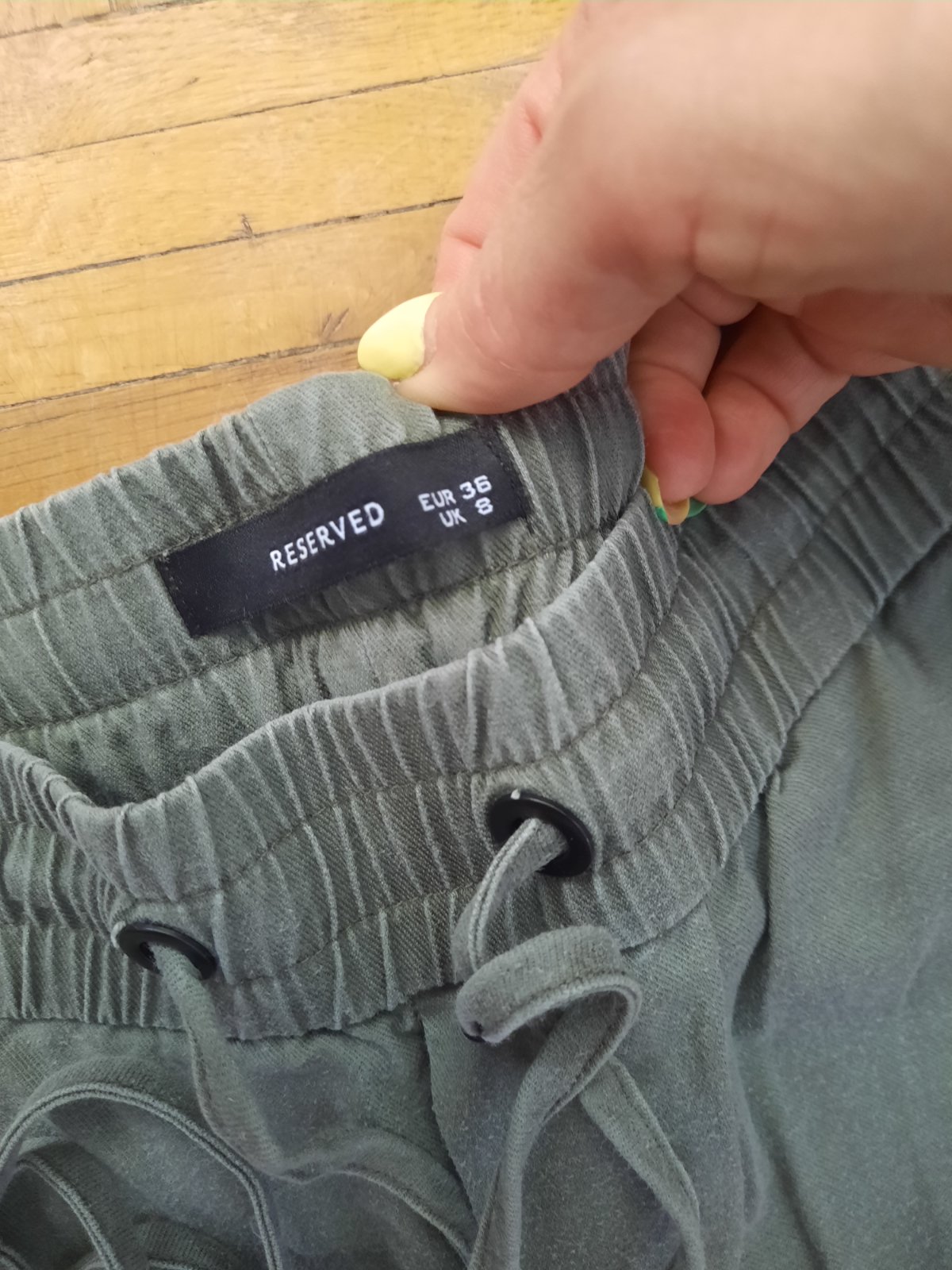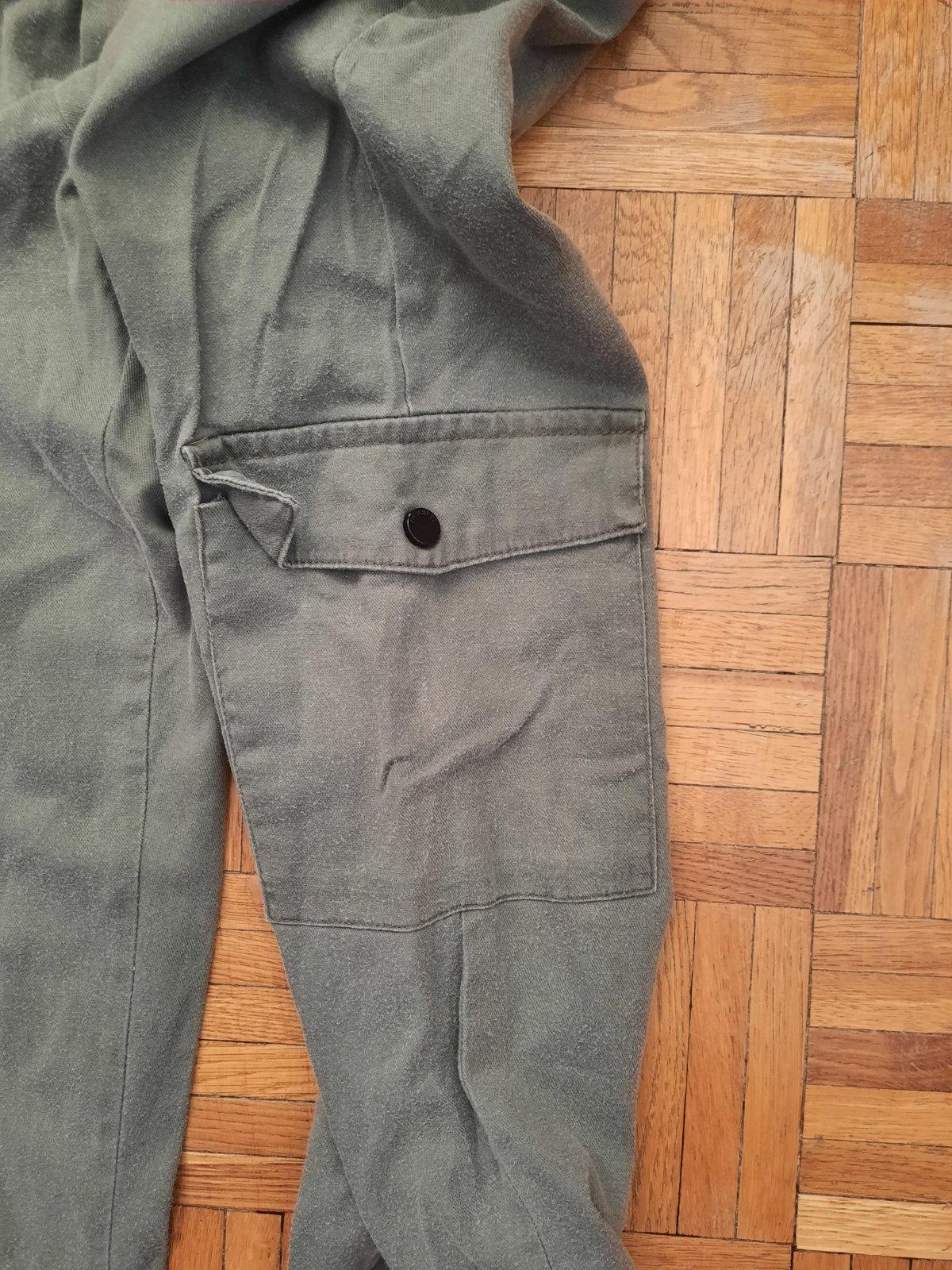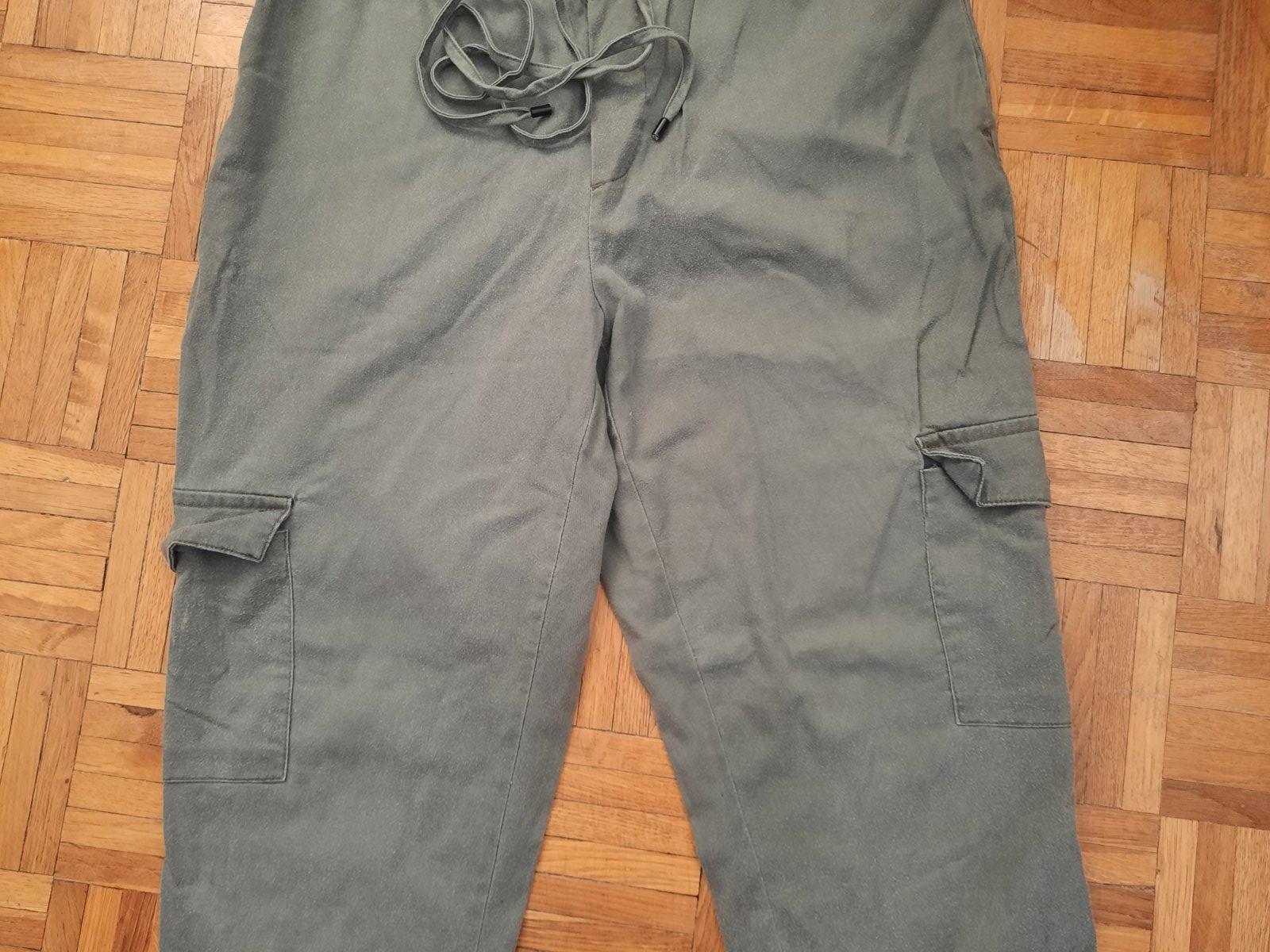 Super nohavice s vačkami z boku na sáre. Pás na gumu+funkčnú šnúru; dole sára tiež na gumu. Je to príjemný vzdušný materiál. Veľkostne sedí aj na 38 podľa mňa.