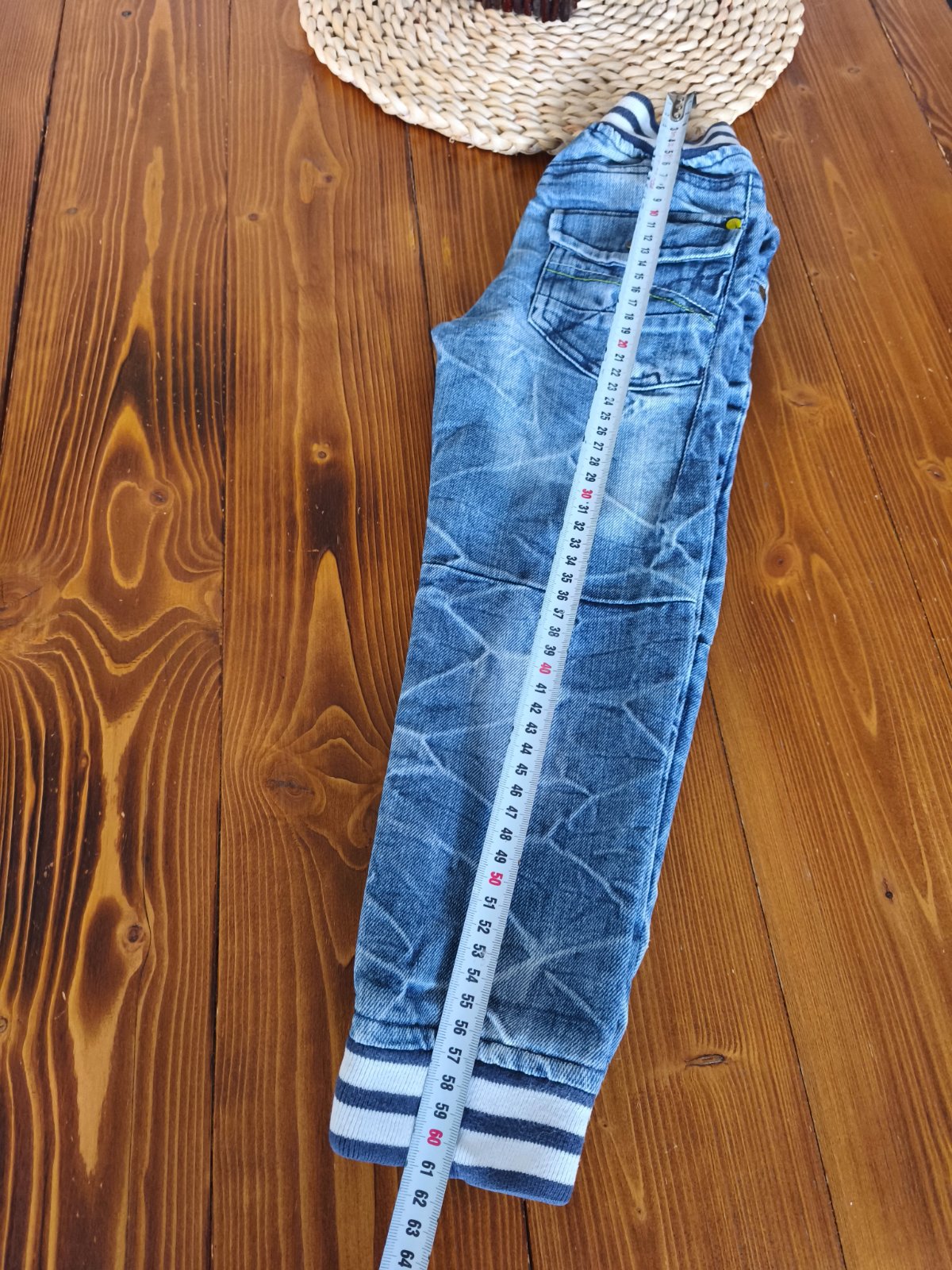 Pekné rifle, tenšie, bez poškodenia. Na chudšieho chlapca. Celková dĺžka je 63 cm, od rozkroku 44 cm. Guma v páse na reguláciu. Cena + pošta