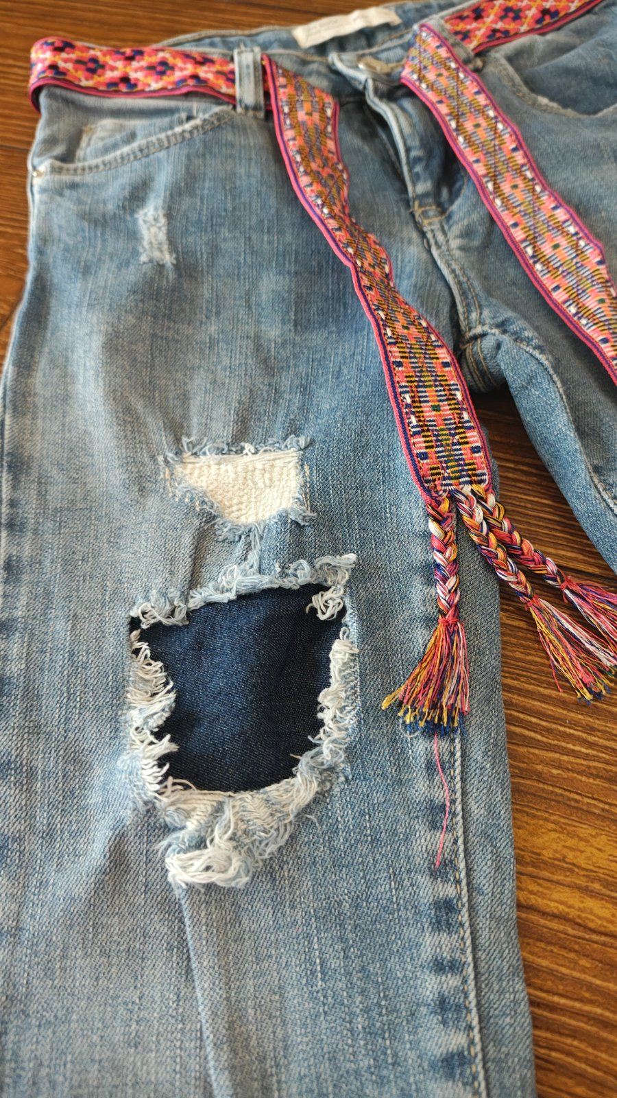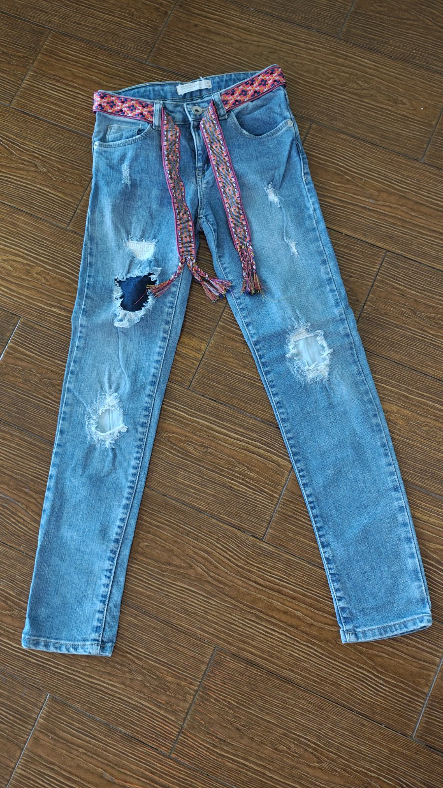 Top stav! Frajerske roztrhané (dotrhance sú podšité, takže diery nie sú holé" Rozmery na foto. Opasok je súčasťou, ale dá sa aj vybrať. Sú veľmi pekné.
