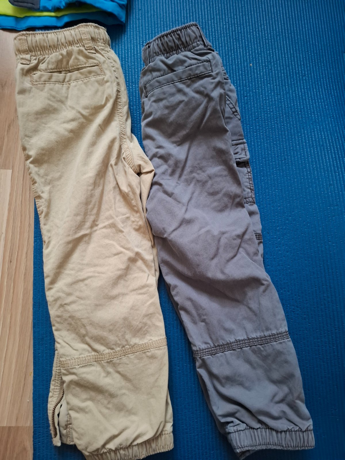 Podstate nohavice 2 ks 1 bledá kava drhe sivé vhodné pre 4 ročného chlapca.