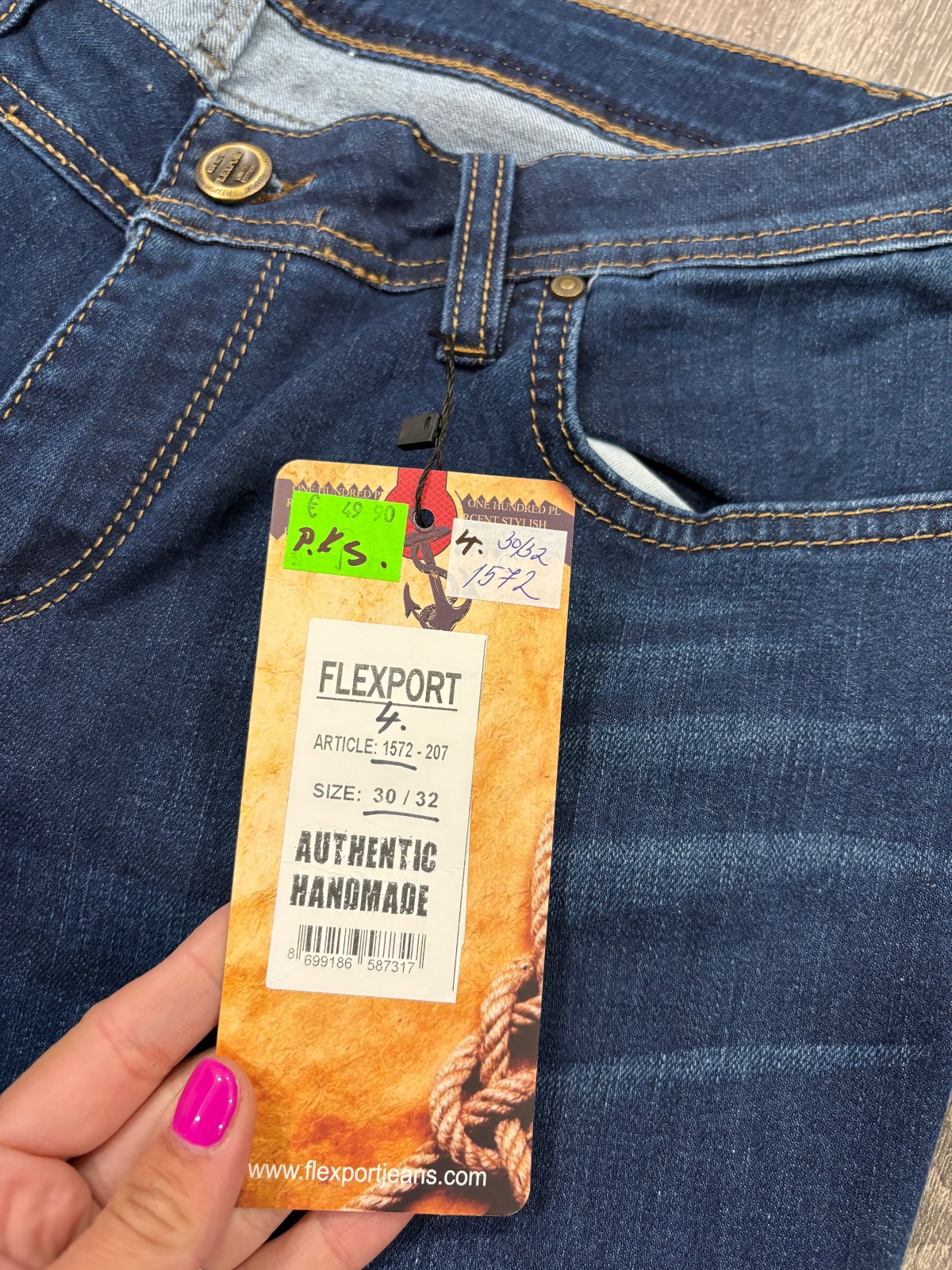 Flexport nove damske rifle tmavomodre ,komplet s visackou,velkost je 30/32,dlzka 99cm,sirka v pase je od 37cm do 44x2cm,,predny sed je 23cm a zadny sed je 36cm ,sirka stehna pod rozkrokom je od 27x2cm do 32x2cm,sirka dole je 15x2cm