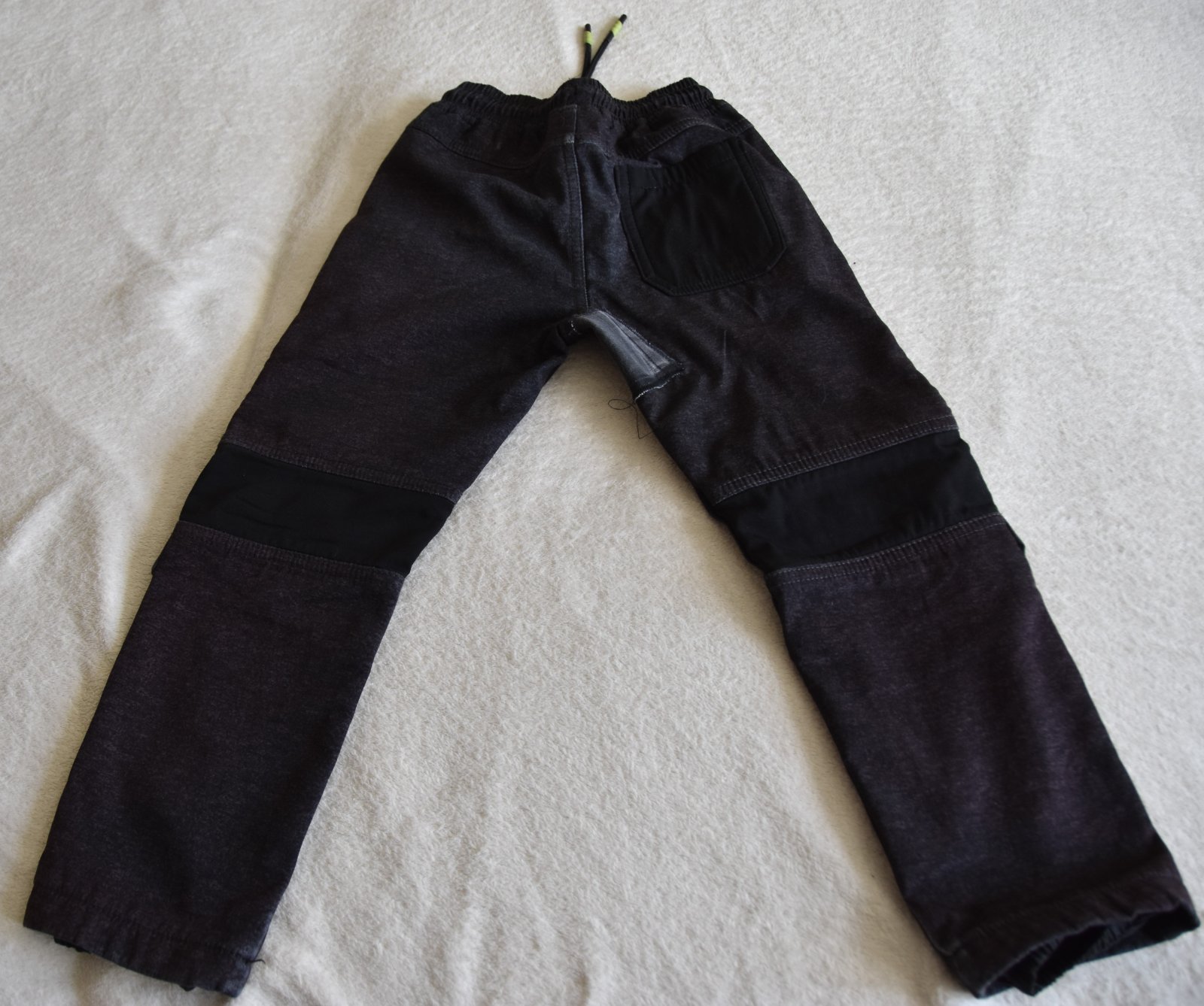 Pridám ku nákupy. Na kolenách nové záplaty, plus na rozkroku tiež záplata.