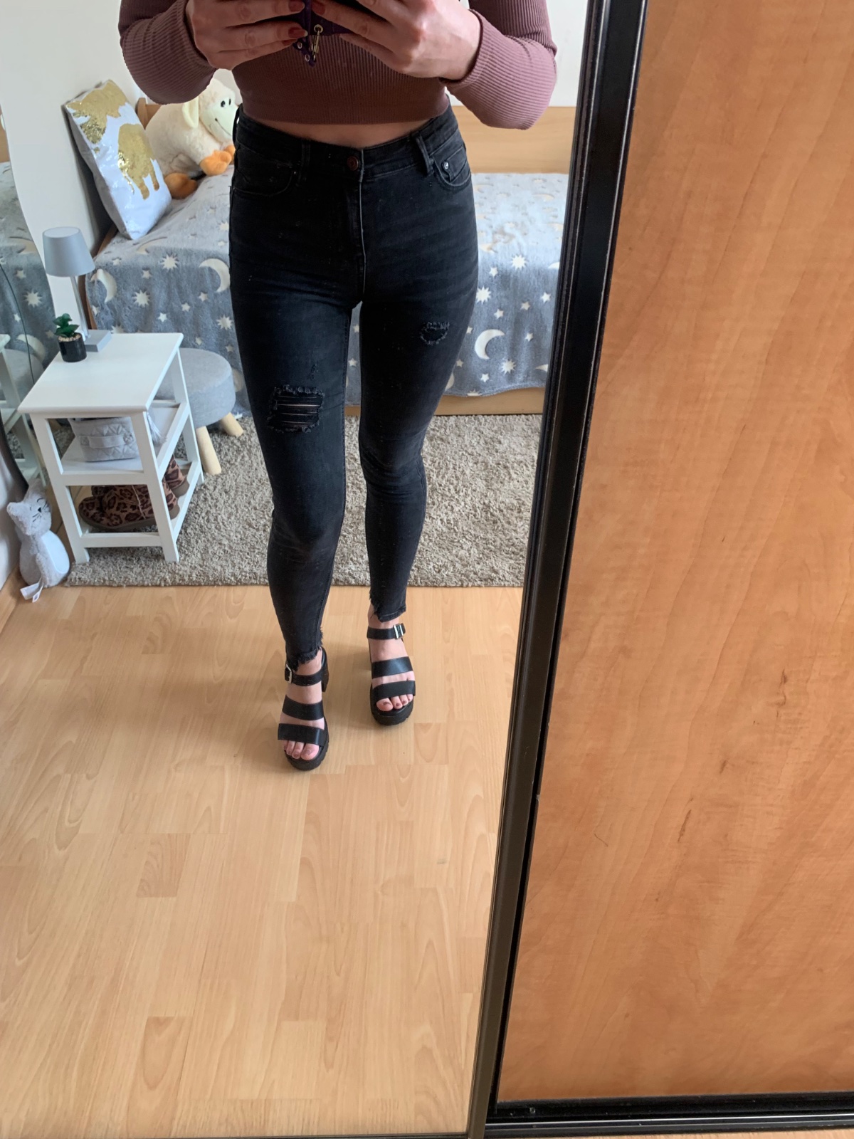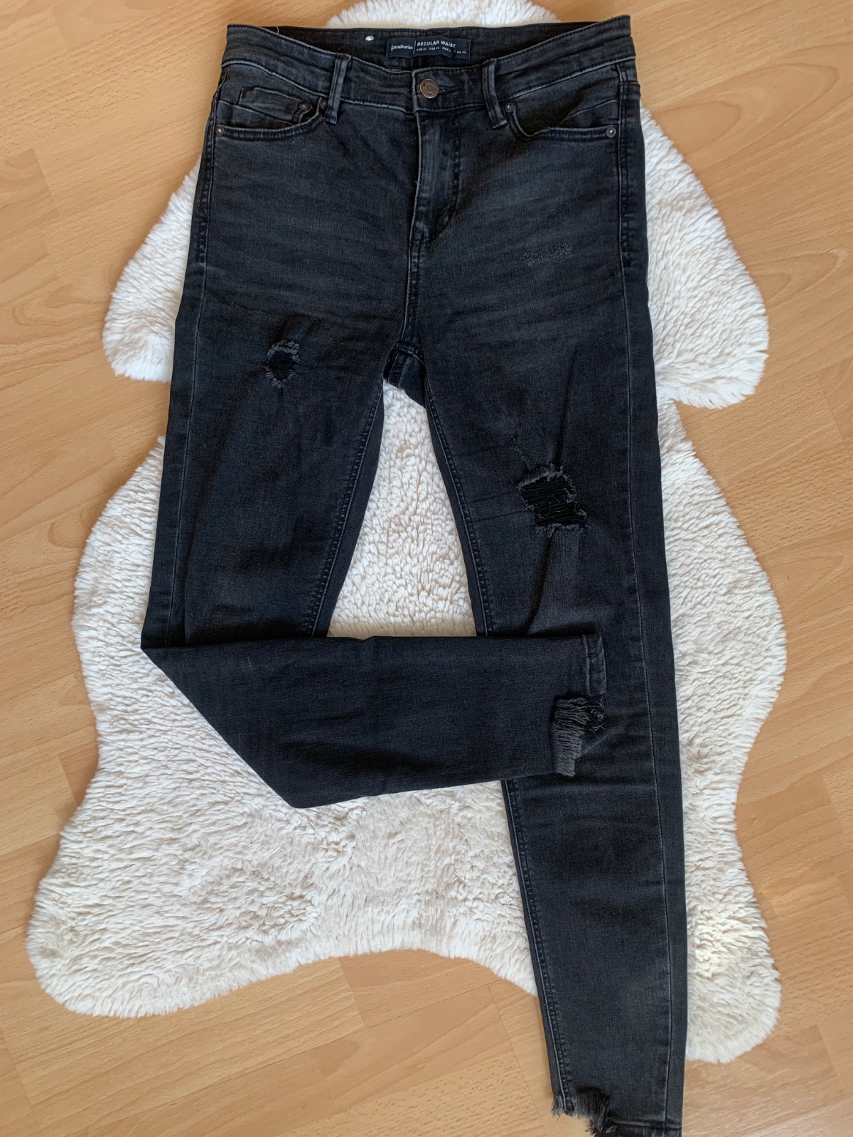 Predam parkrat oblecene rifle, top stav bez poskodeni, akurat ja som ich nosila vyhrnute a na mieste, kde bol lem, je vidno jemny pasik (mozno zide dole s kvalitnym odstranovacom skvrn). Su maslov...