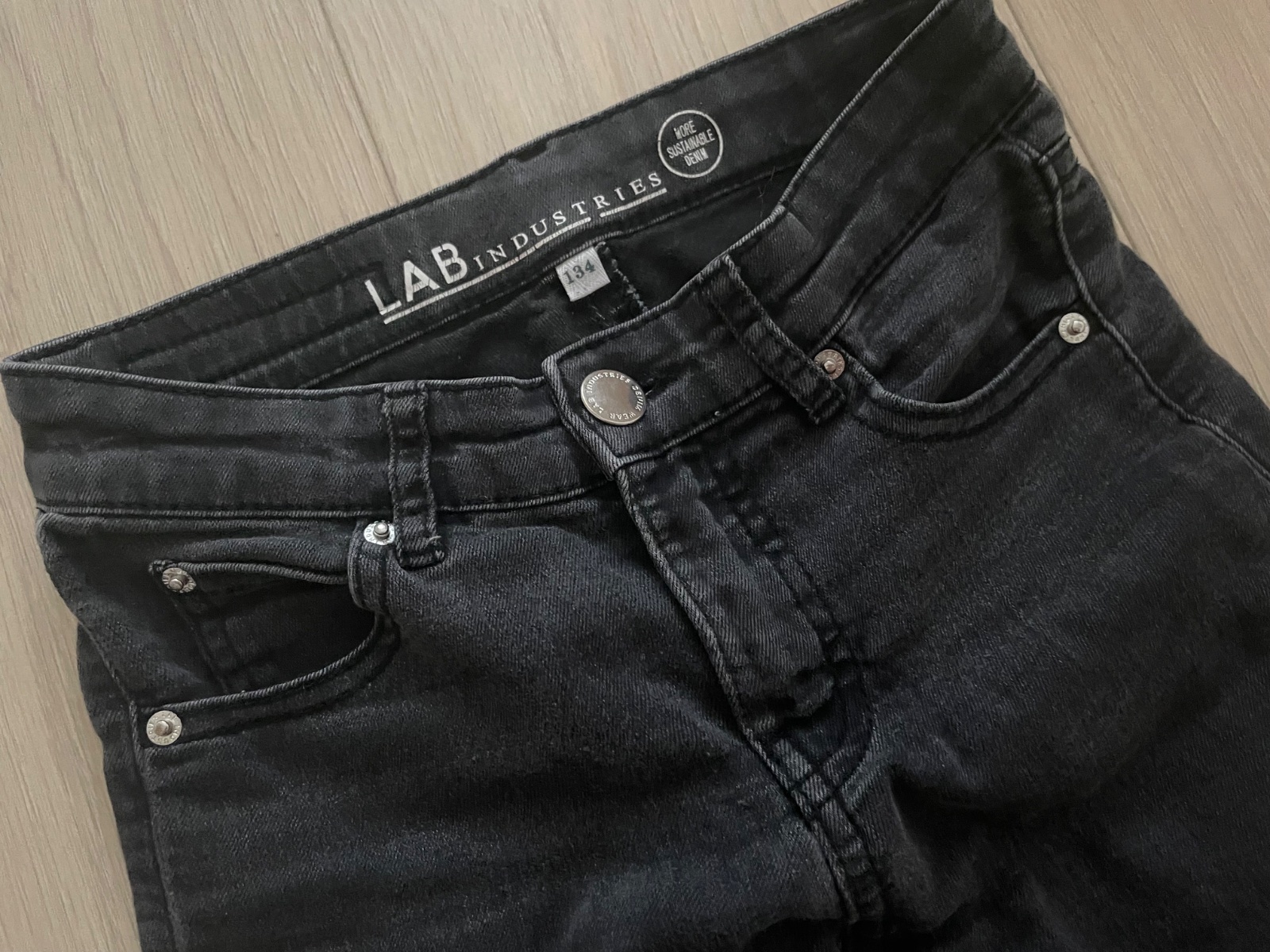 Dobrý stav, tenká, príjemná rifľovina, dobre sa prispôsobia. Zn. LAB Industries.