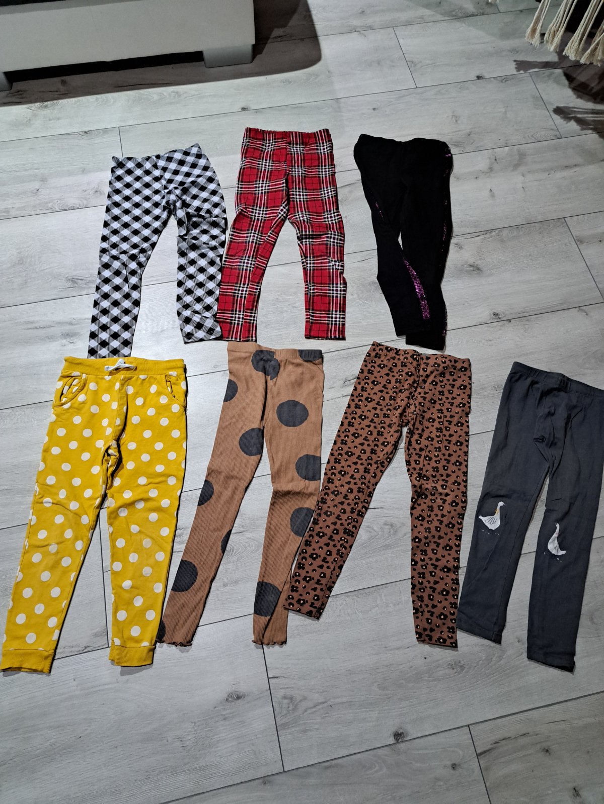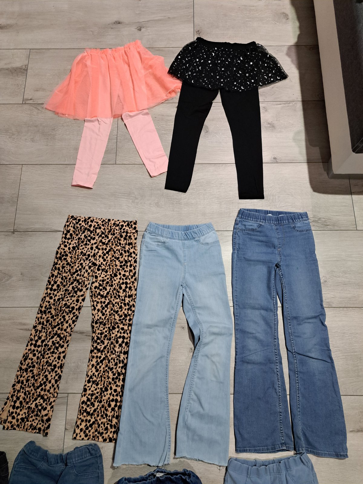Prva fotka - nosene minimalne 5e kus, druha foto- malo nosene - horny rad zateplene- 4e...,dolny rad leginy 3e...tretia foto - so suknou- nosene minimalne 4e.... velkost 128-134...cena spolu 40e za 16ks
