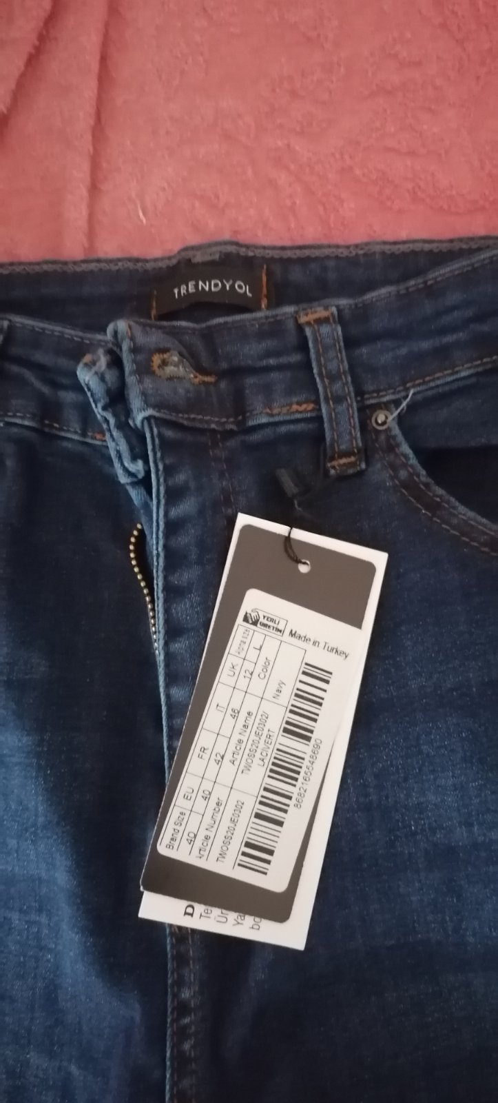 Predám úplne nové (len raz vyskúšané) rifle značky Trendyol (nesadla veľkosť)., celková dĺžka 93 cm, obvod pása 70 cm