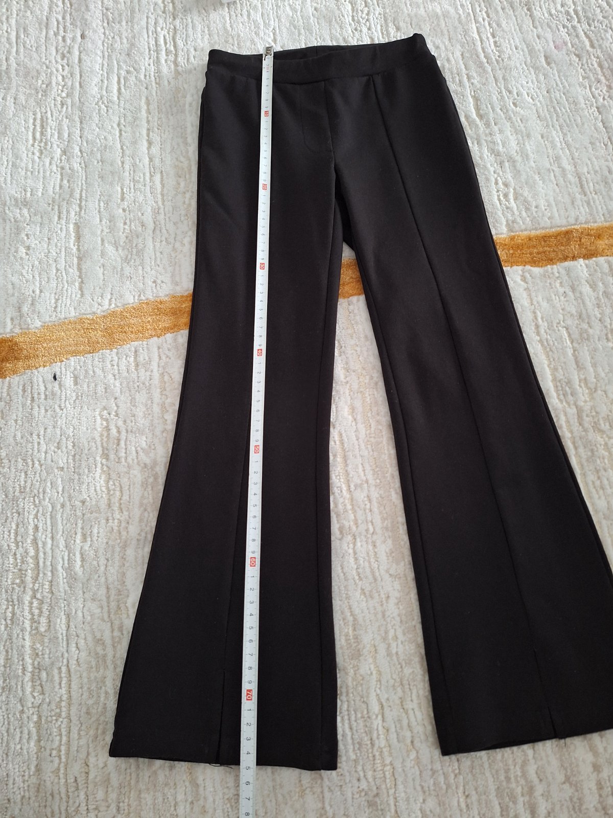 Krásne štýlové zvonové nohavice č 128. S našitými pukmi aj rázporkom na prednej strane. Sú v super stave, sú z pevného, ale veľmi prijemného materiálu. Vhodné na všetky ročné obdobia. Nosené len po dcérke. Cena 6 €
