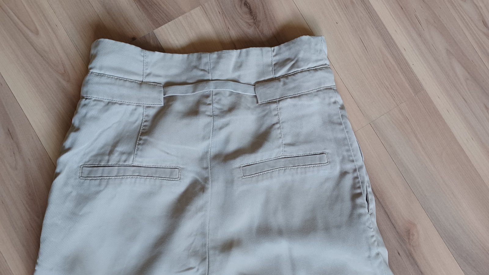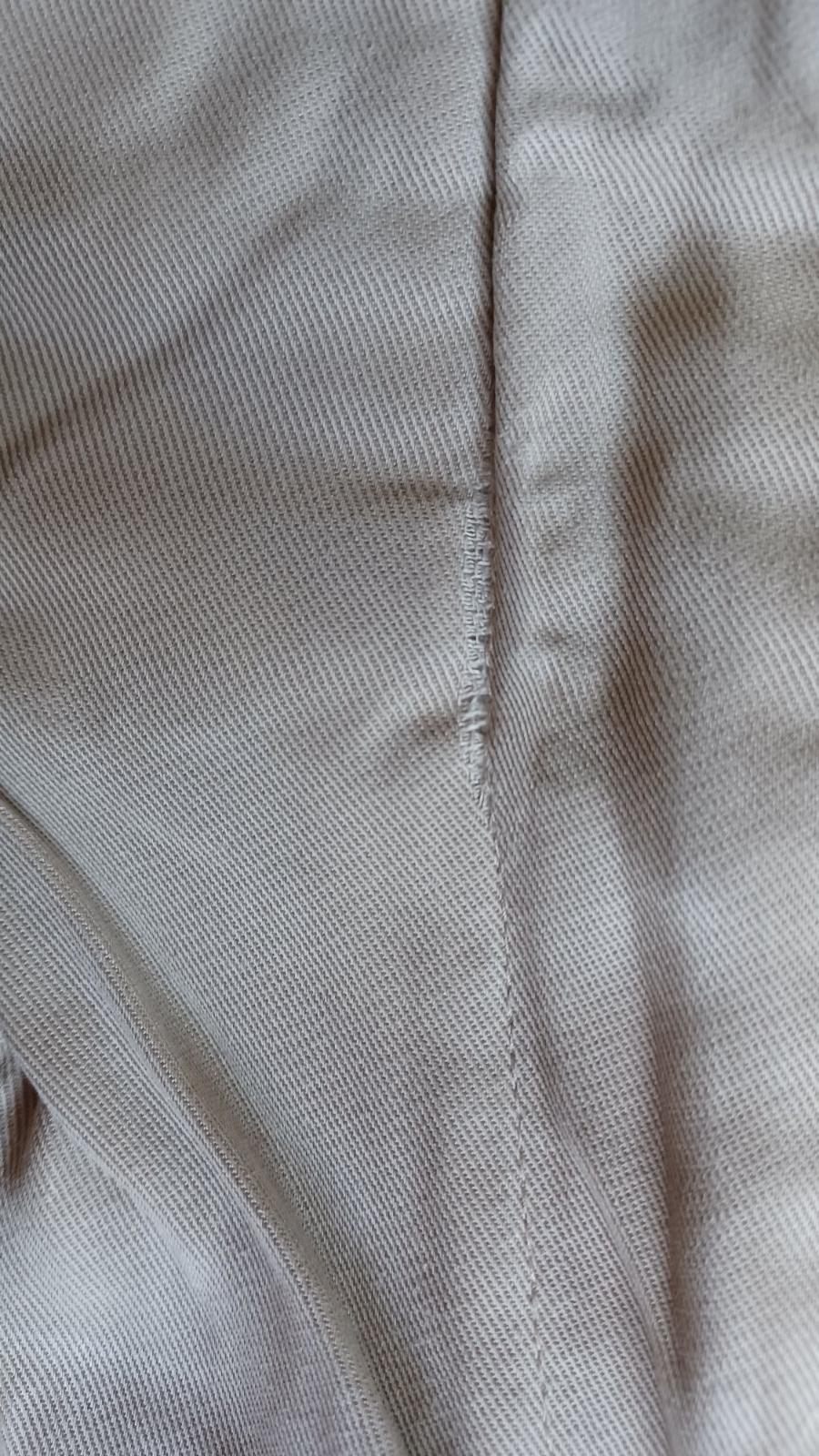 Minimálne nosené, avšak majú dve malé chybičky, ktoré sú zachytené na fotke č. 5 a 6 (mierne zoslabnuté zošívanie a malý fliačik)