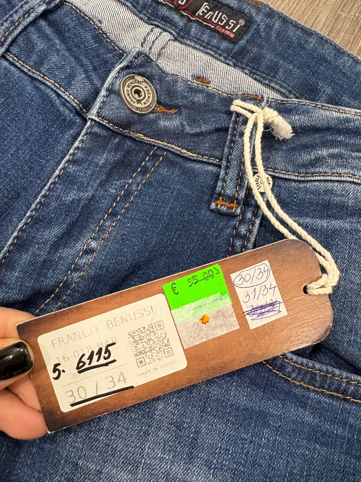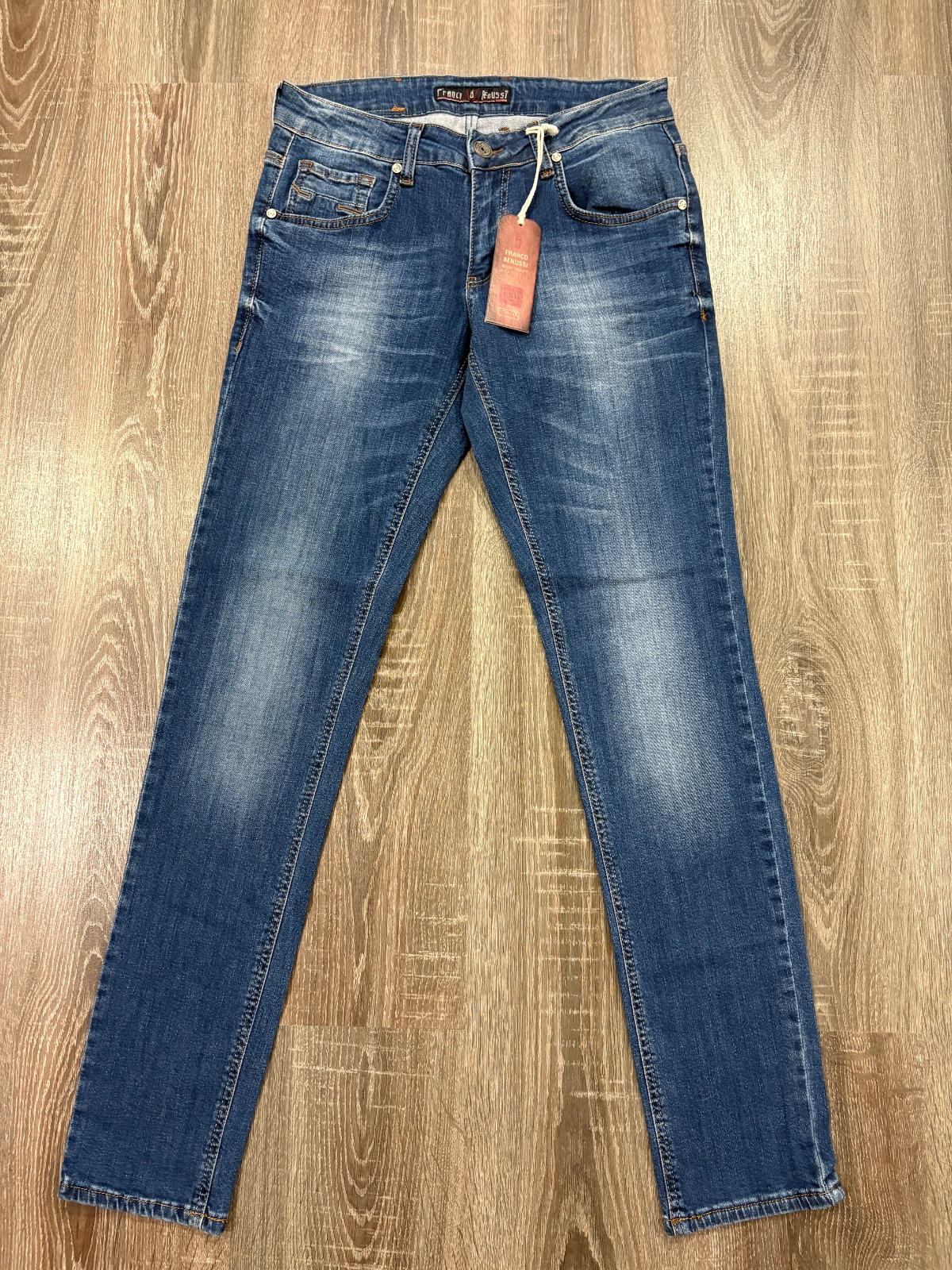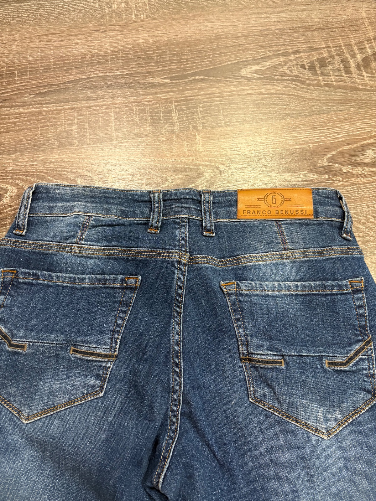 Franco Benussi nove panske rifle ,komplet s etiketou,PC 55 eur, material bavlna a elastan,velkost W30L34,dlzka je 102,sirka v pase je cca od 38x2cm do 43x2cm,predny sed je 23cm a zadny je 37cm,sirka stehna pod rozkrokom je od 28x2cm do 34x2cm,sirka dole je 16,5cm