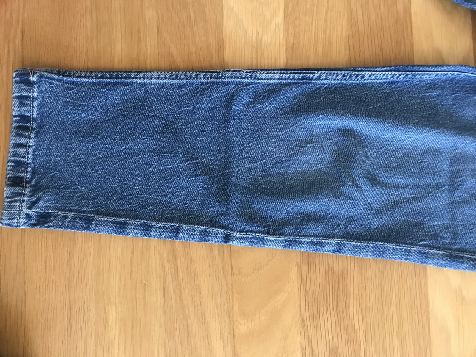 Výborné rifle po kolená . Odstrihnuté - vyzerajú ako originál ostrapkané. My sme mali veľa rifliel tak sme tieto odstrihli :-). Nezošúchané - výborný stav - elastické. Uvedená veľ 146. Nameraná D ...