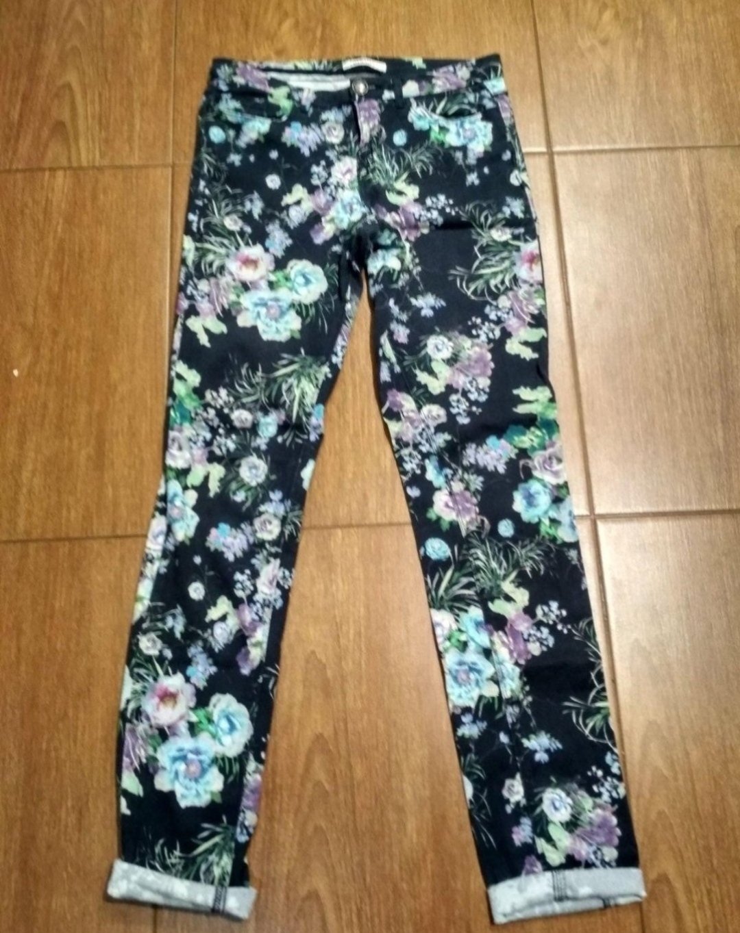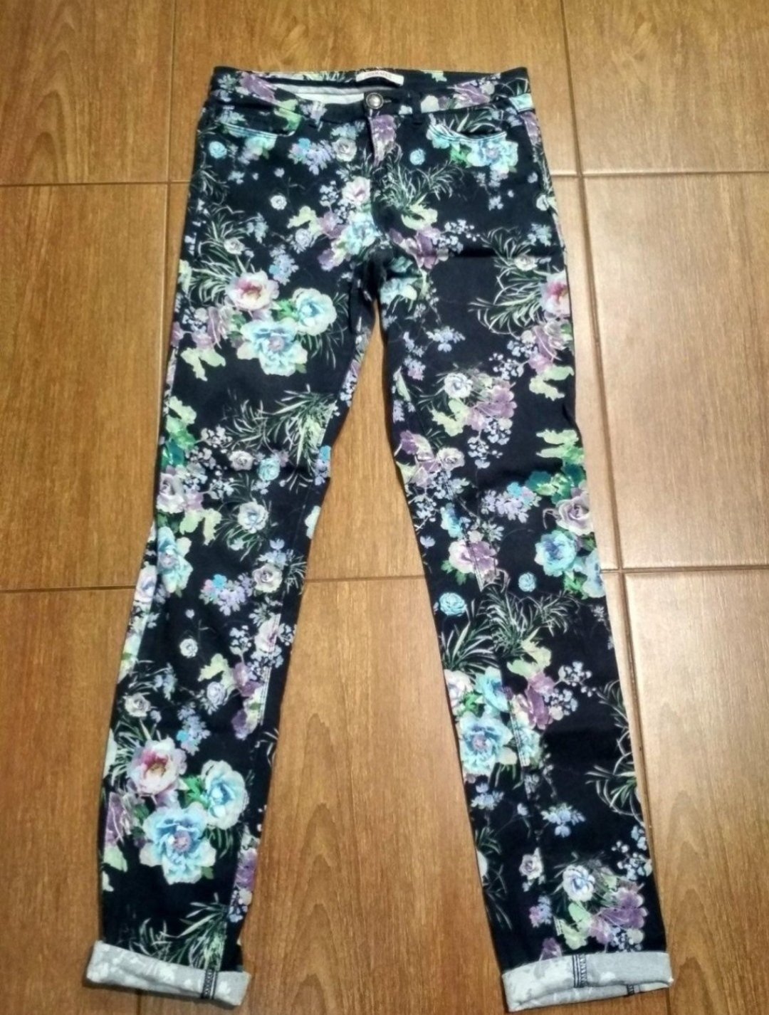 Nosené bez poškodení bez fľakov bez dier dĺžka bok 102 cm vnútorná dĺžka 80 cm pas – 32 cm natiahne sa na 36 cm
