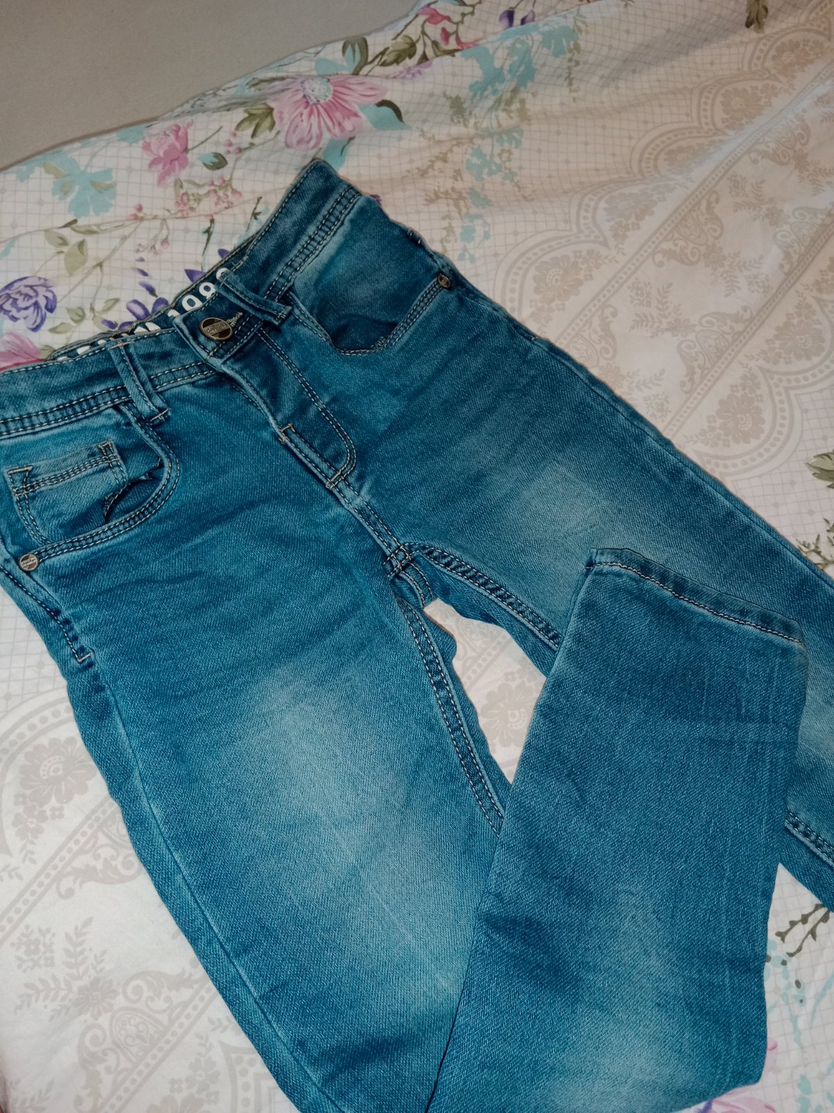 Prvé rifle na gumičku, značka dopodopo, veľkosť 122 na 6-7 rokov. Zachovalé. Celková dĺžka je 67 cm. Cena 2 eurá. Druhé sú úplne v poriadku len vpredu sú prešité viď foto - preto cena 1,50 eura. V...