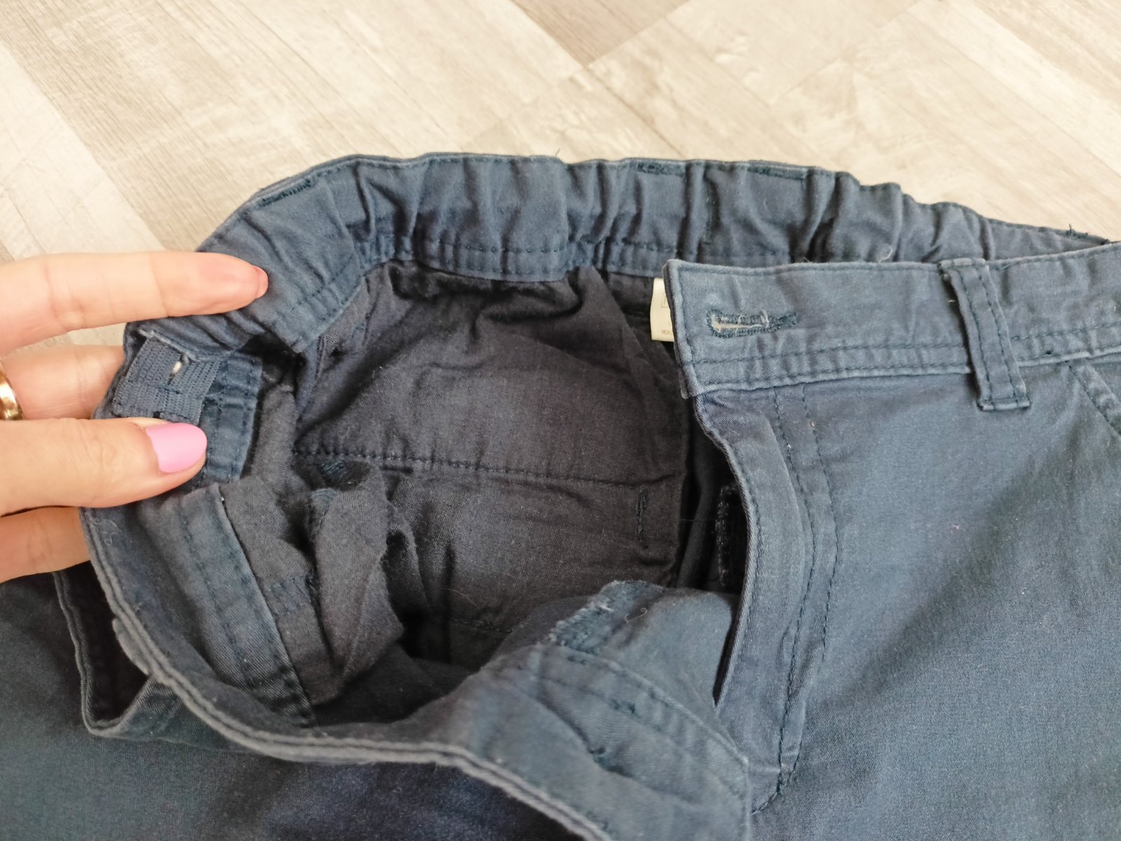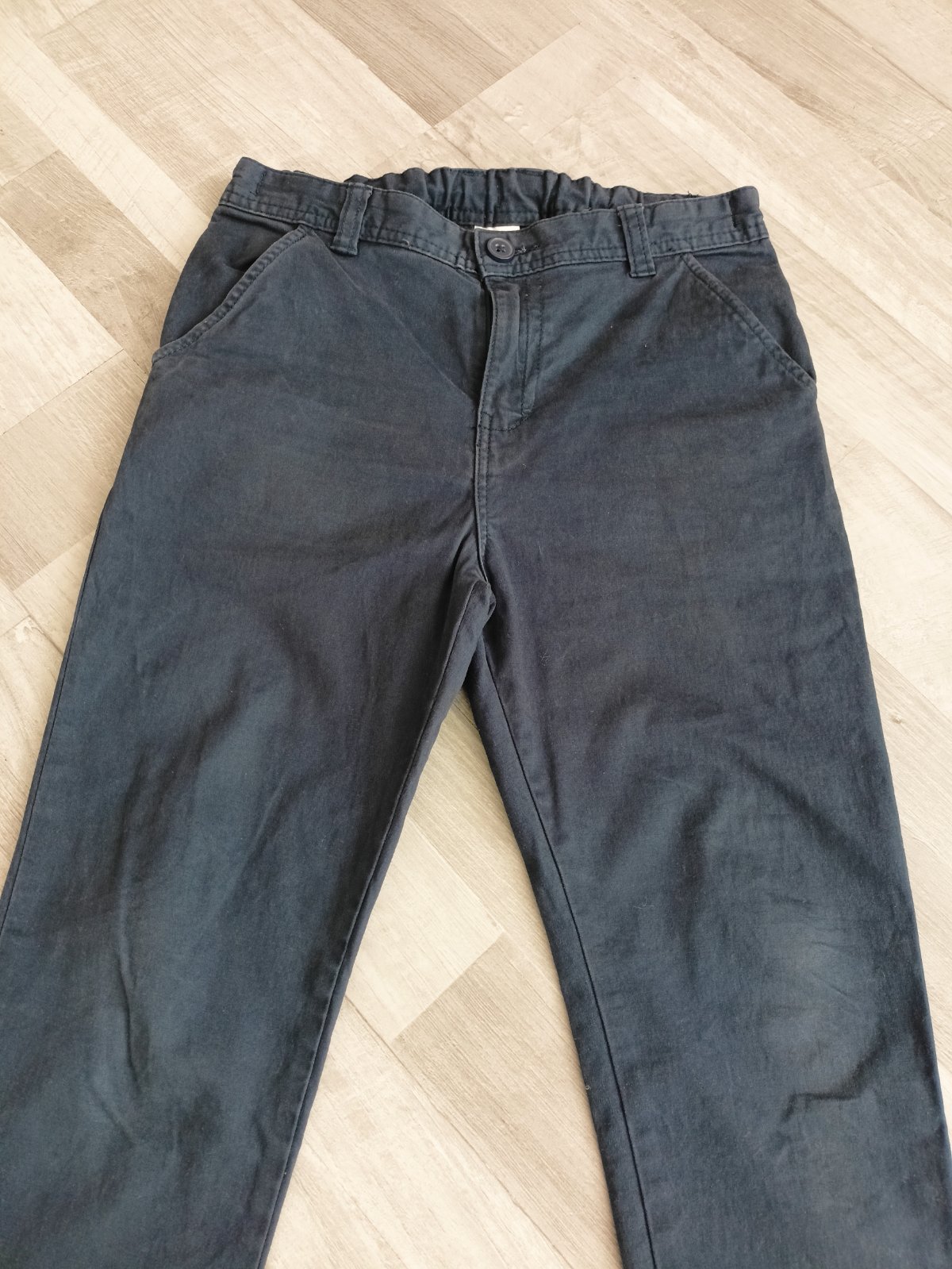 Nohavice sú v zachovalom nosenom stave. Je to príjemný materiál, v páse sa dajú stiahnuť.