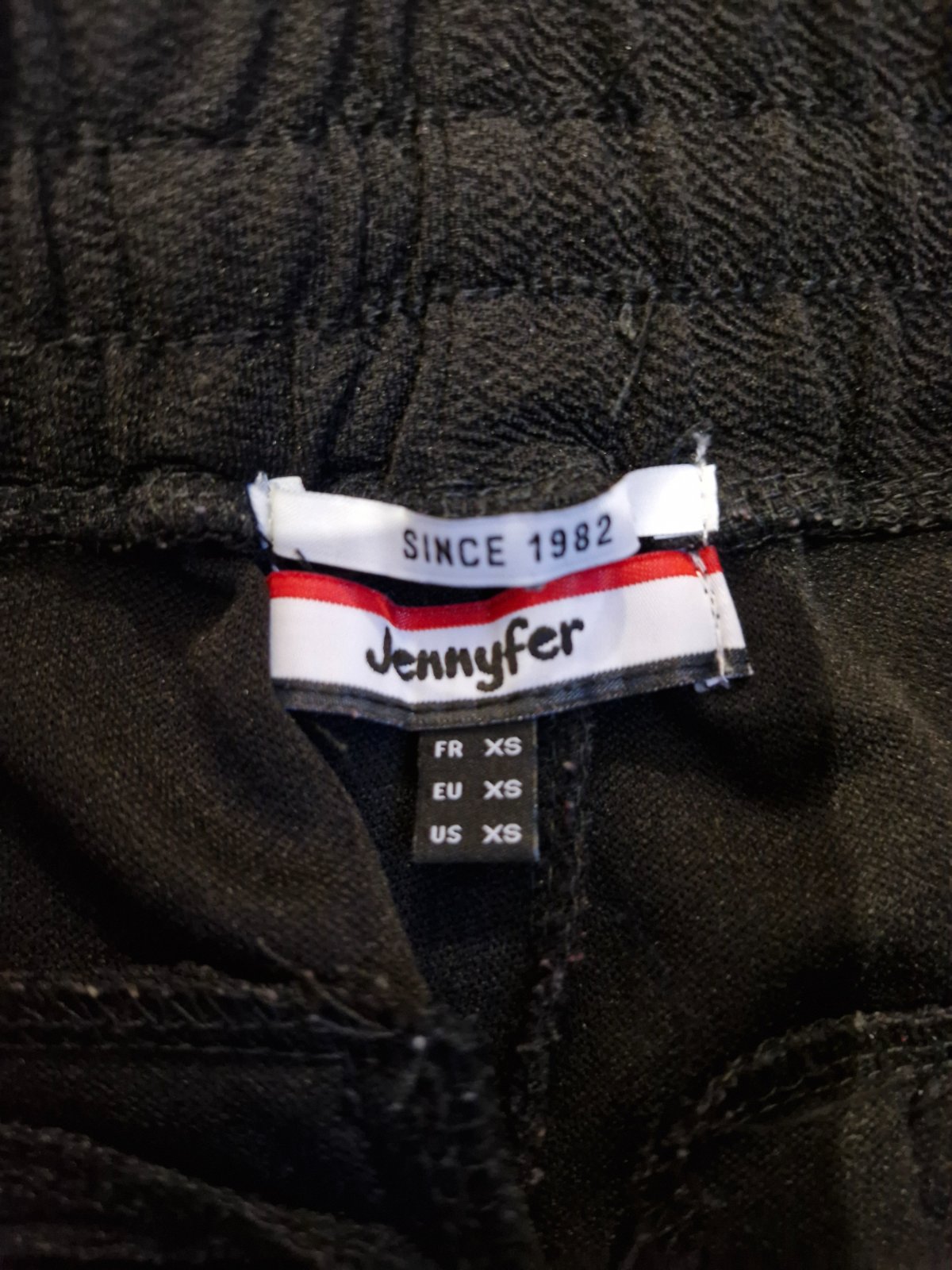 Nosene, v dobrom stave, bez poškodenia, veľkosť XS, 32-34, dĺžka 86.5 cm, dĺžka rozkrok 65 cm, pás v kľude 2×31 cm, v páse gumička a funkčná šnúrka.