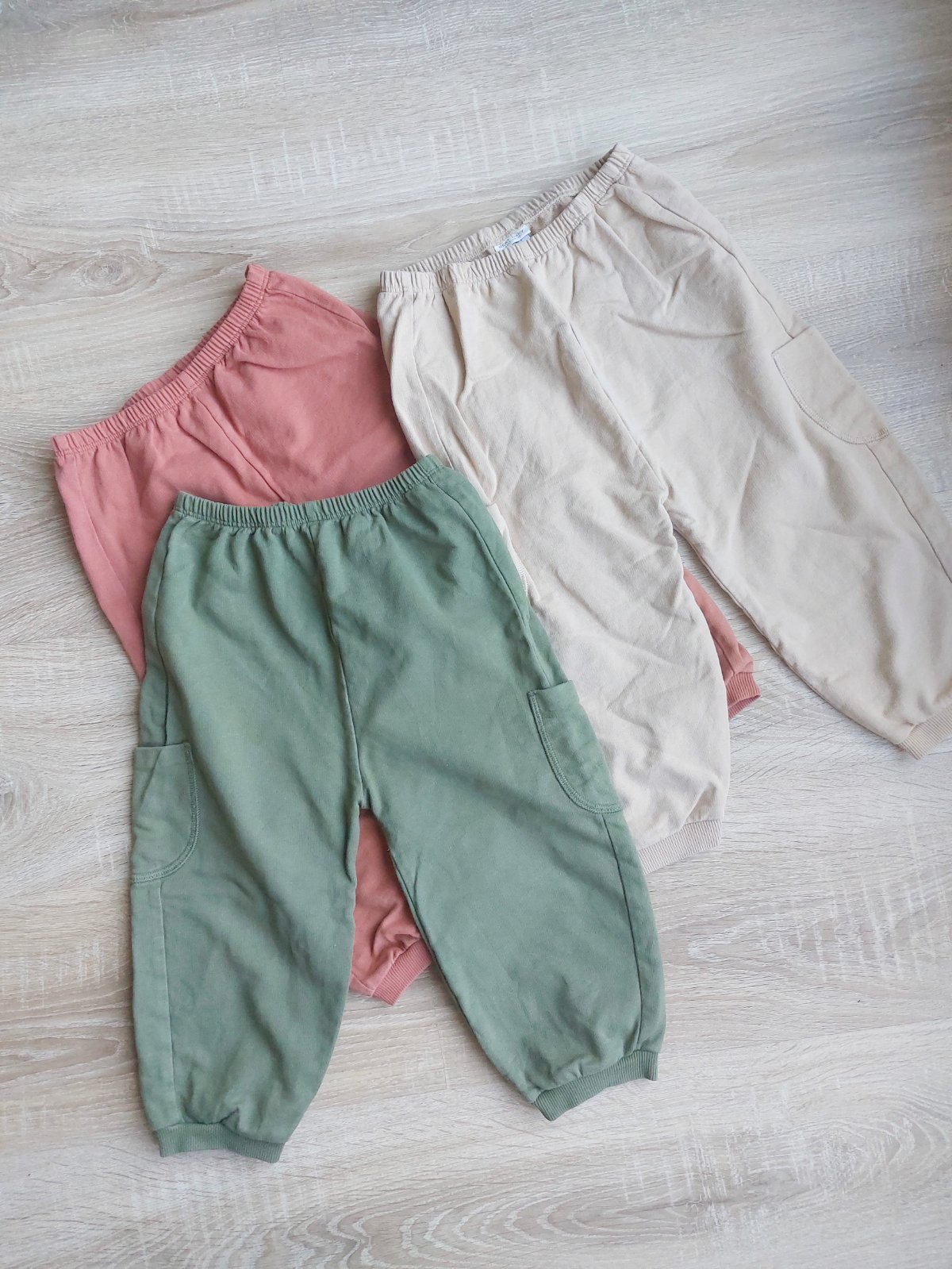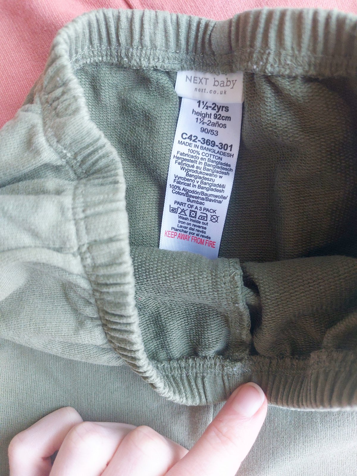 Predám 3x tepláky Next vo veľkosti 92, materiál bavlna, veľmi pekný strih jemne oversized, kaki a béžové sú ako nové, boli iba ako náhradné na prezlečenie v škôlke, tehlové boli málo nosené, pri bližšom pohľade vidno jemné zafarbenie na kolienkach, dávam ich grátis. Osobný odber je možný v Bratislave-Ružinove alebo pošlem poštou po prevedení peňazí vopred na účet.