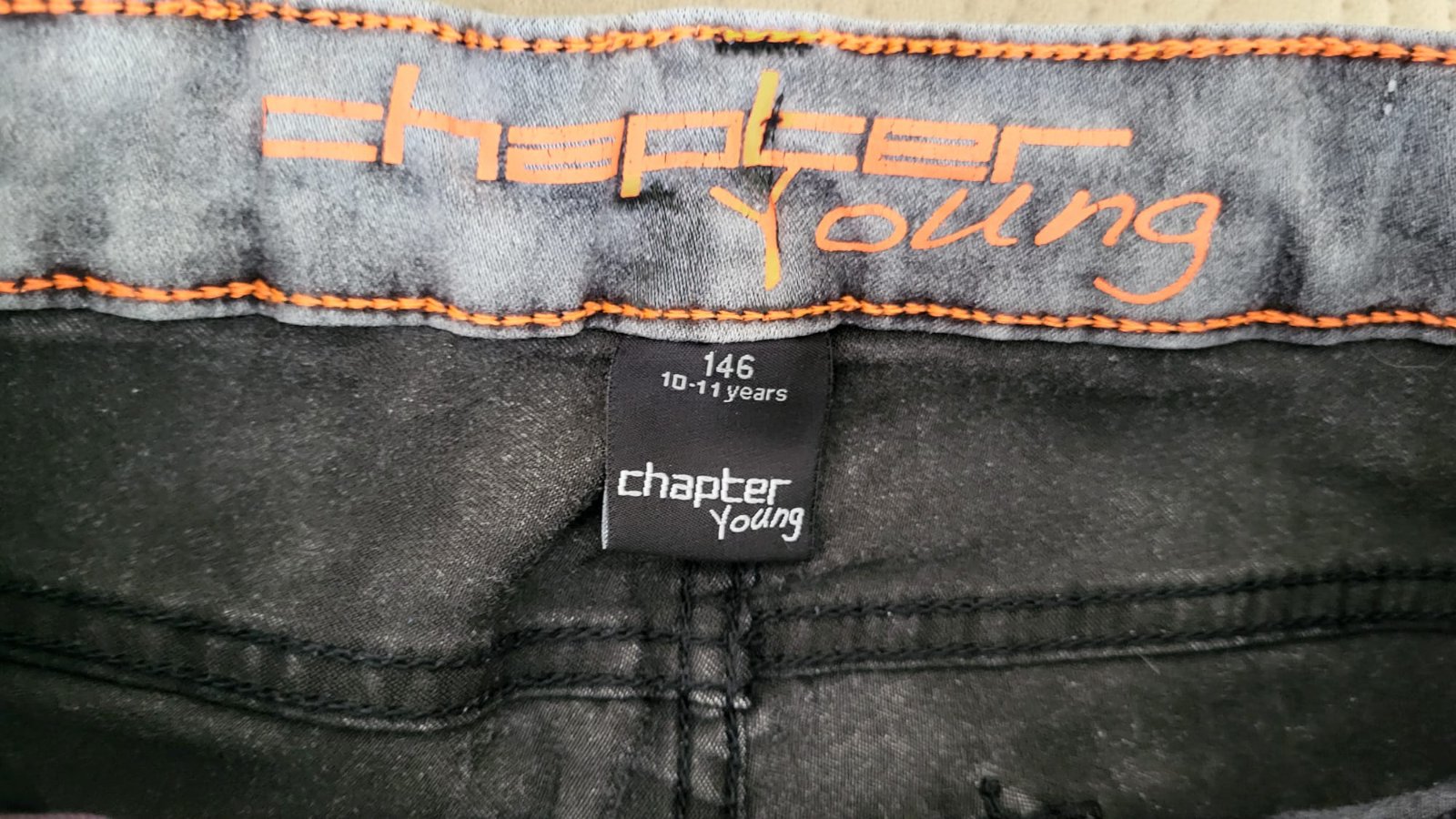Mäkké rifle značky Chapter Young, veľkosť 146. Na kolenách sú diery, vid foto.