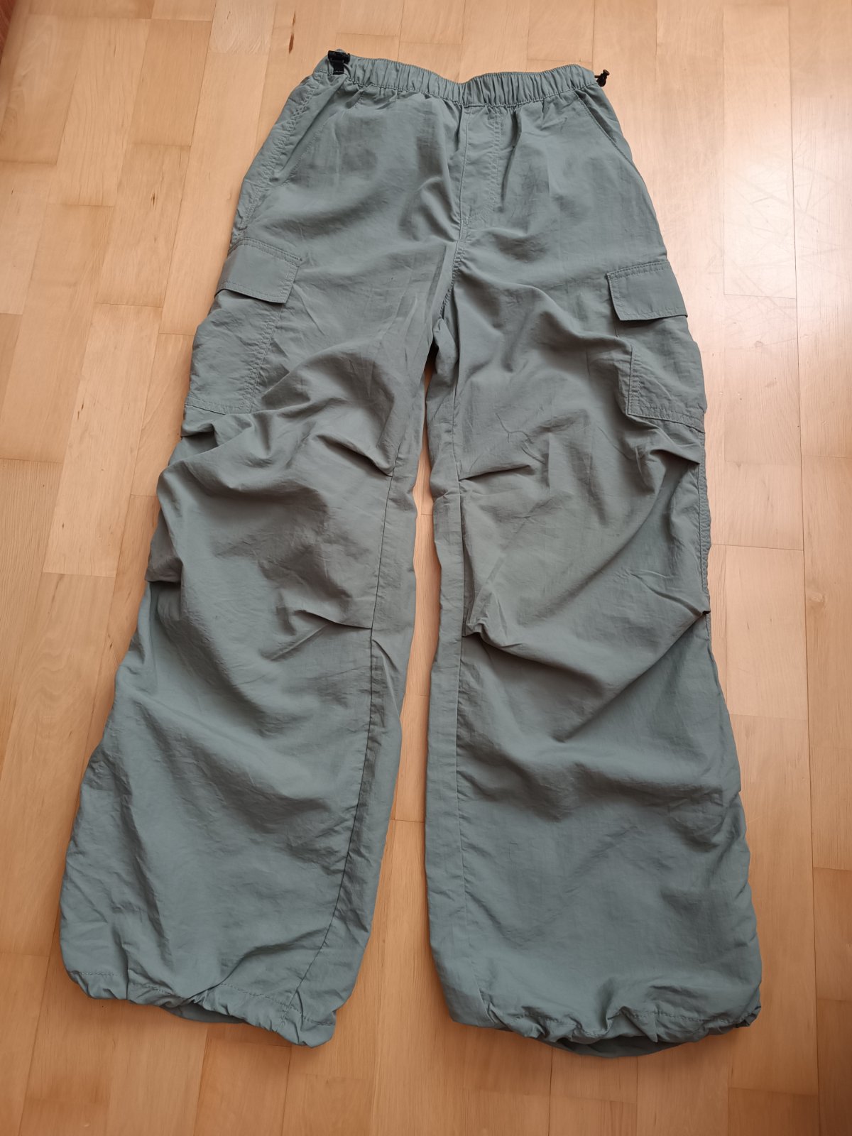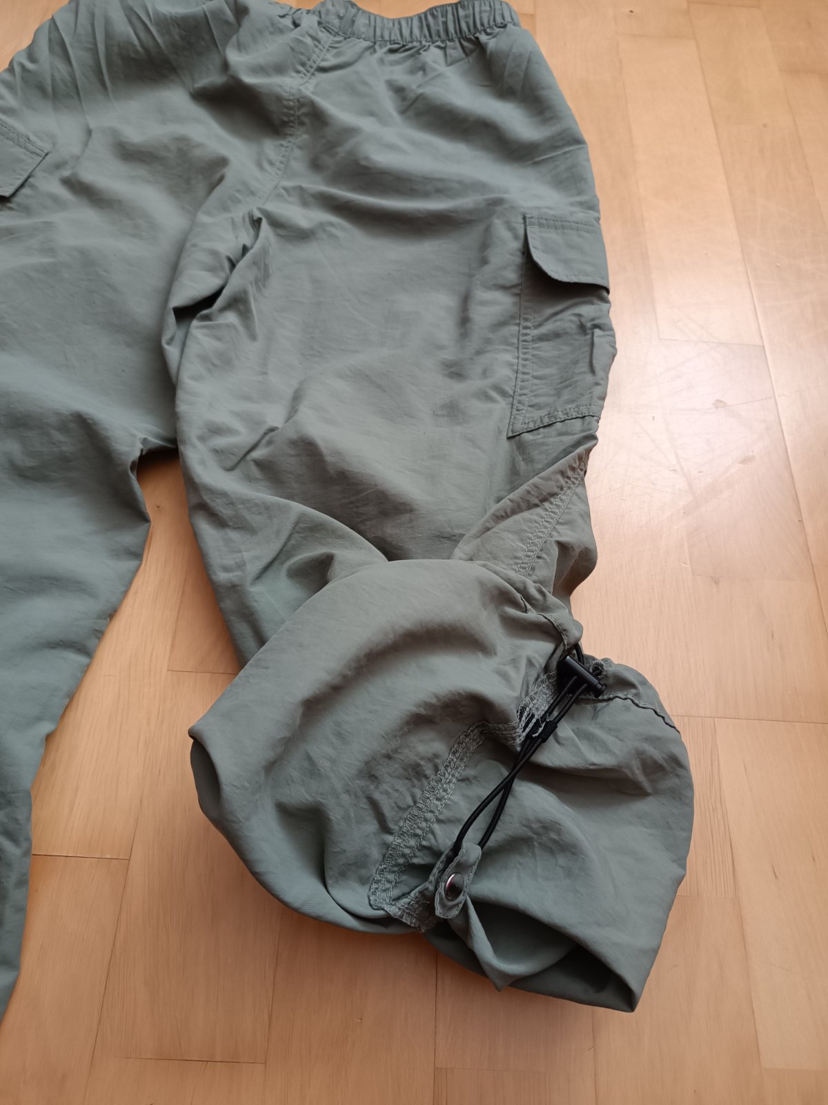Málo nosené. Dĺžka 94 cm, pás 31 cm/guma. "Parašutisticke, tenké, vhodné aj na turistiku.