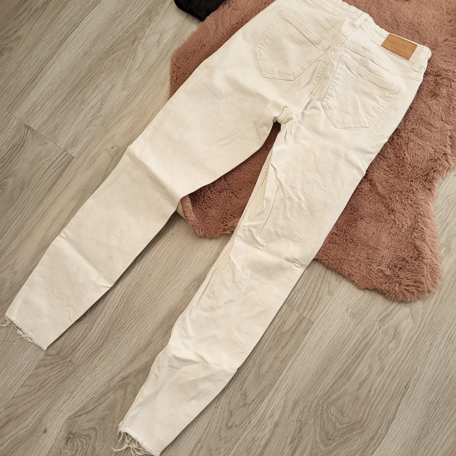 Uzky elastický strih, pas vysoky. Makka riflovina. Oblecene vyzerajú super. Dcére sú už tesne.