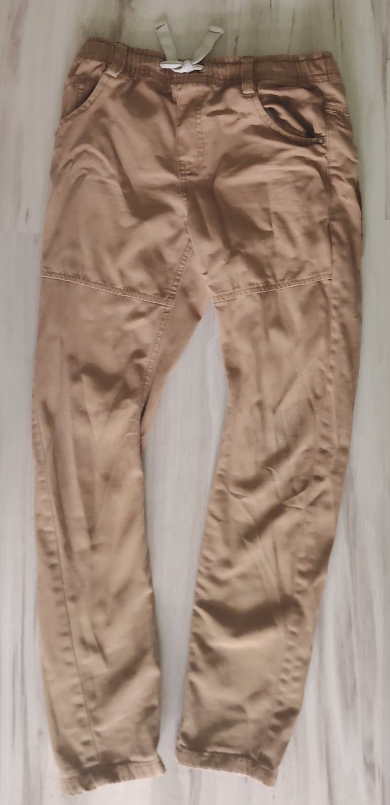 Kvalitné nenosené nohavice..písané 140,ale myslím,že kludne väčšie..bavlna,kupované v butiku-PC 990 SK! nemecká značka MILLS.. Dlžka 91cm pás 32 cm---na chudšieho chlapca..mám ešte jedny menšie..d...