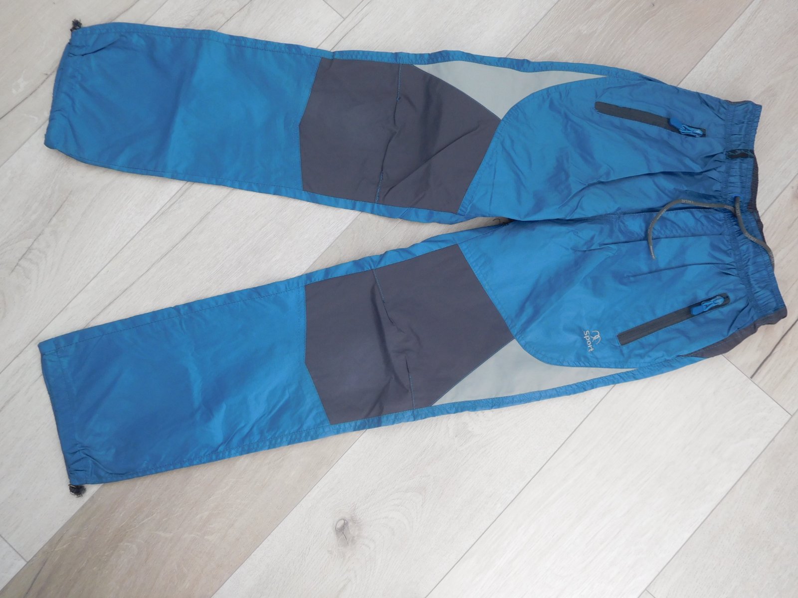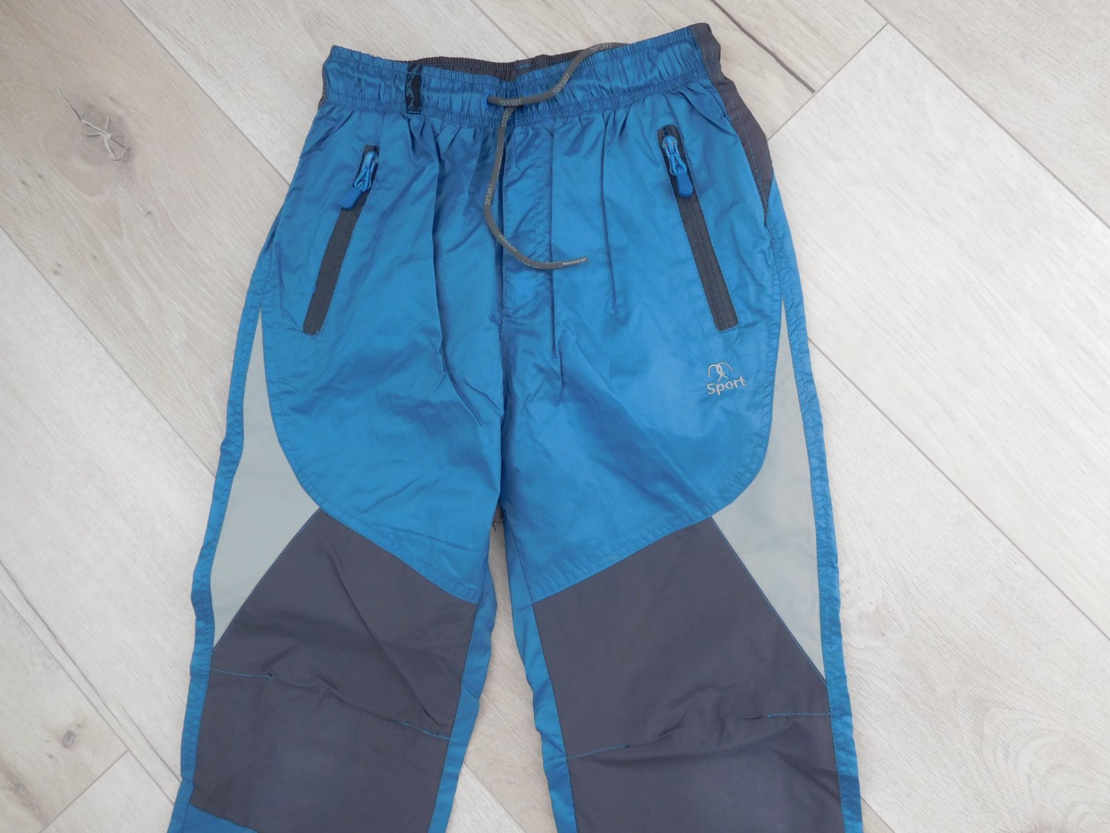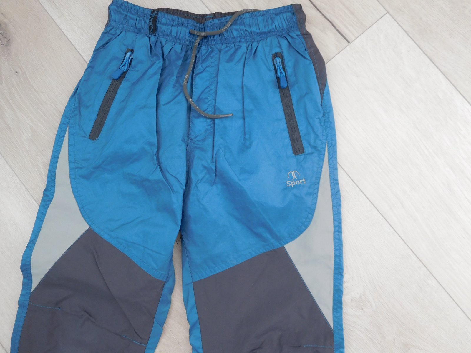 šuštáčiky sú nepoškodené,čisté,mekké,z vnútra podšité bavlnenou šedou látkou mekou,pás je zapracovaný do gumy+šnúrka na utiahnutie,dolný okraj nohavíc,taktiež zapracovaný,do gumy-veľmi dobre nositeľné,veľmi dobre ošetrovateľné.
