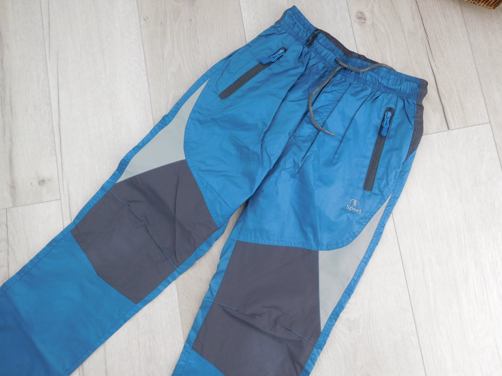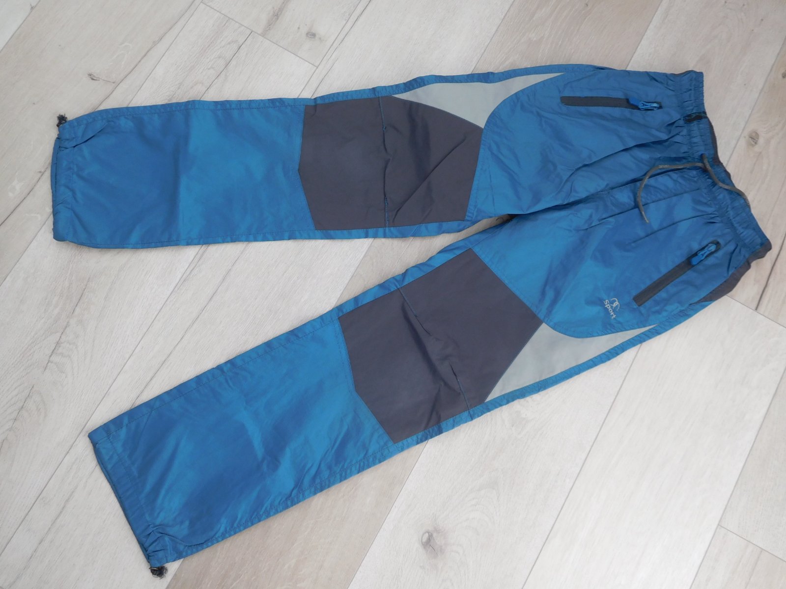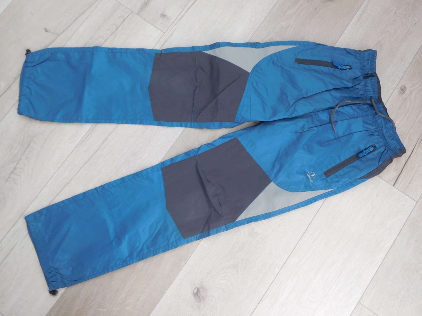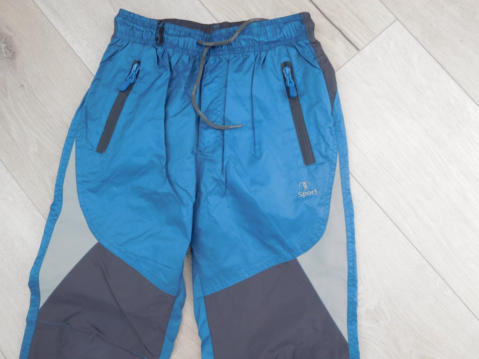 šuštáčiky sú nepoškodené,čisté,mekké,z vnútra podšité bavlnenou šedou látkou mekou,pás je zapracovaný do gumy+šnúrka na utiahnutie,dolný okraj nohavíc,taktiež zapracovaný,do gumy-veľmi dobre nositeľné,veľmi dobre ošetrovateľné.