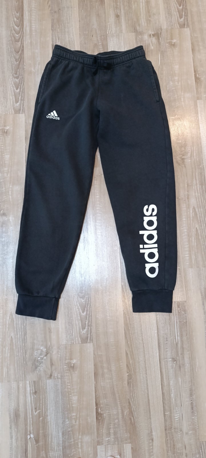 Originál Adidasové tepláky 1x oblečené. Pozor - nie je to TEPLÁKOVINA. Veľ písaná 12-13 r. Vpredu majú 2 vrecká. V páse je guma a šnúrka. Farba je pekná čierna, zle mi to odfotilo. Skôr na chudšieh...