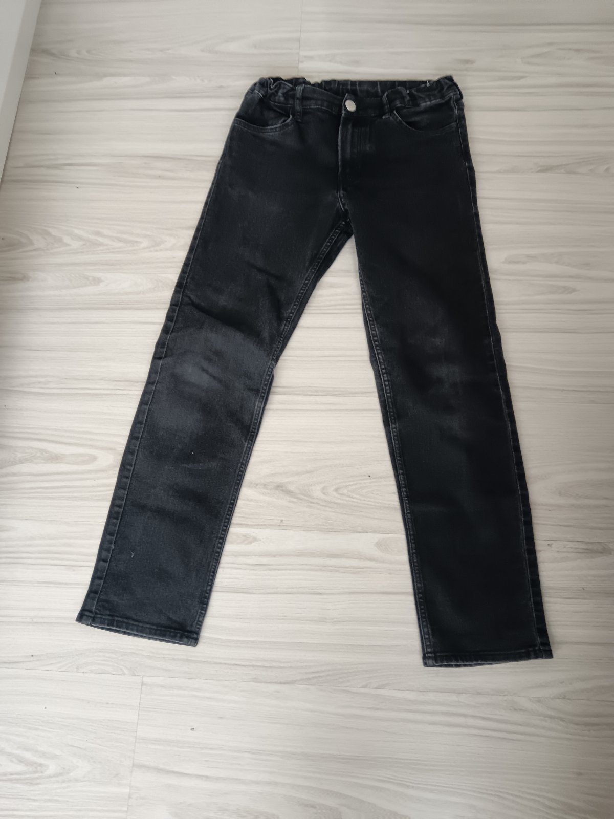 Rifle podšité bavlnenou látkou, elastické, v top stave. Na rifliach sú ozdobné čierne kamienky. Rozmery sú na fotkách.