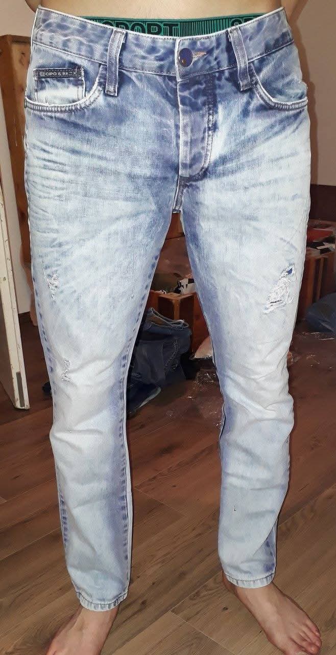 Cropp rifle na gumicku vel.w30, stav ako na fotke. Nad spodnou gumickou na lavej nohe vzadu optrebovanie, rozmery nafotene, max. sirka pasa je 45 cm
