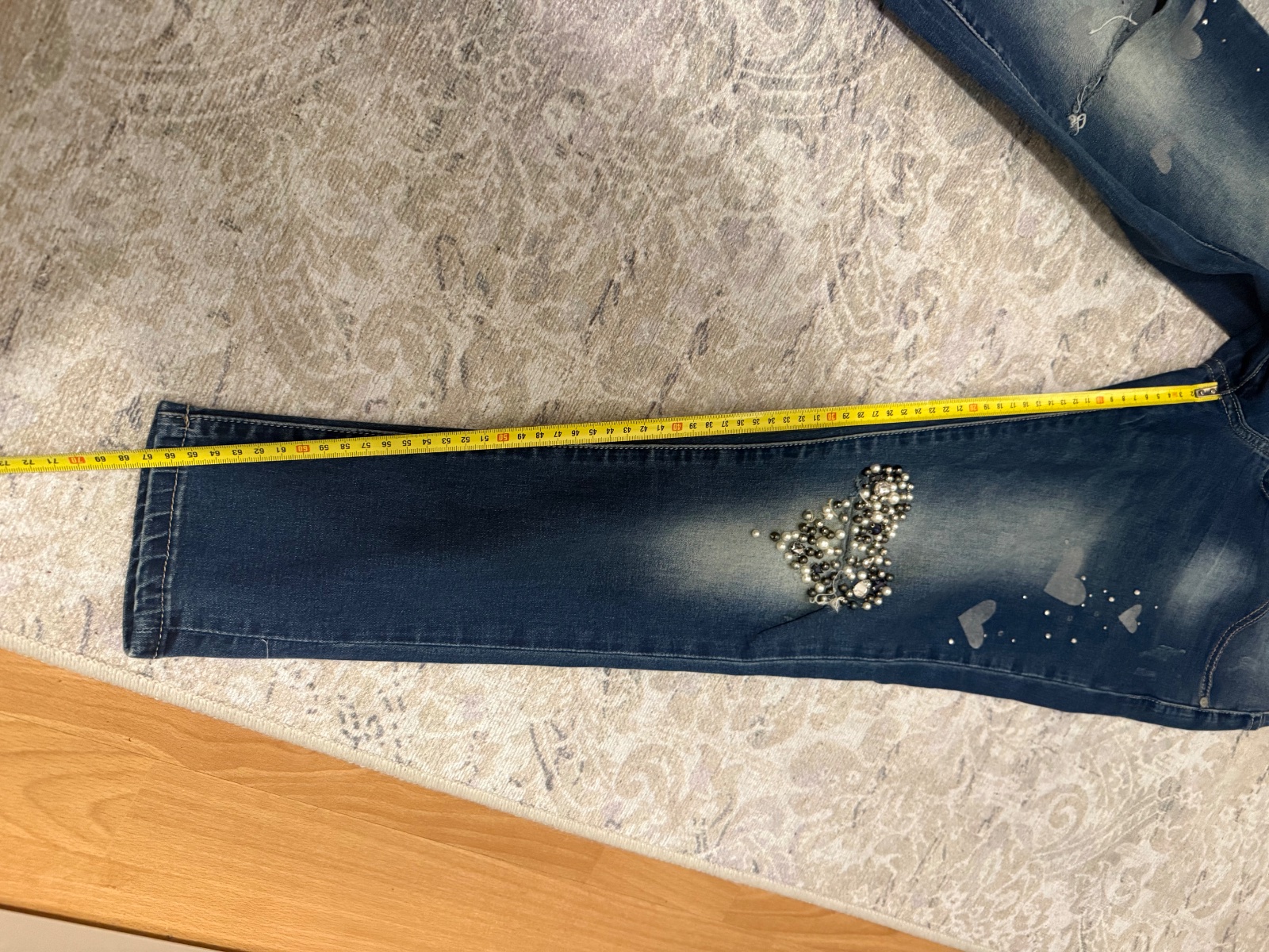 Nenosene rifle na nižšiu postavu rovného strihu s elastanom. Su velmi pohodlne. Zn. John Baner objednane v Bonprixe. Dl. 97 cm, od rozkroku 74 cm, pas je znížený 74-75 cm.