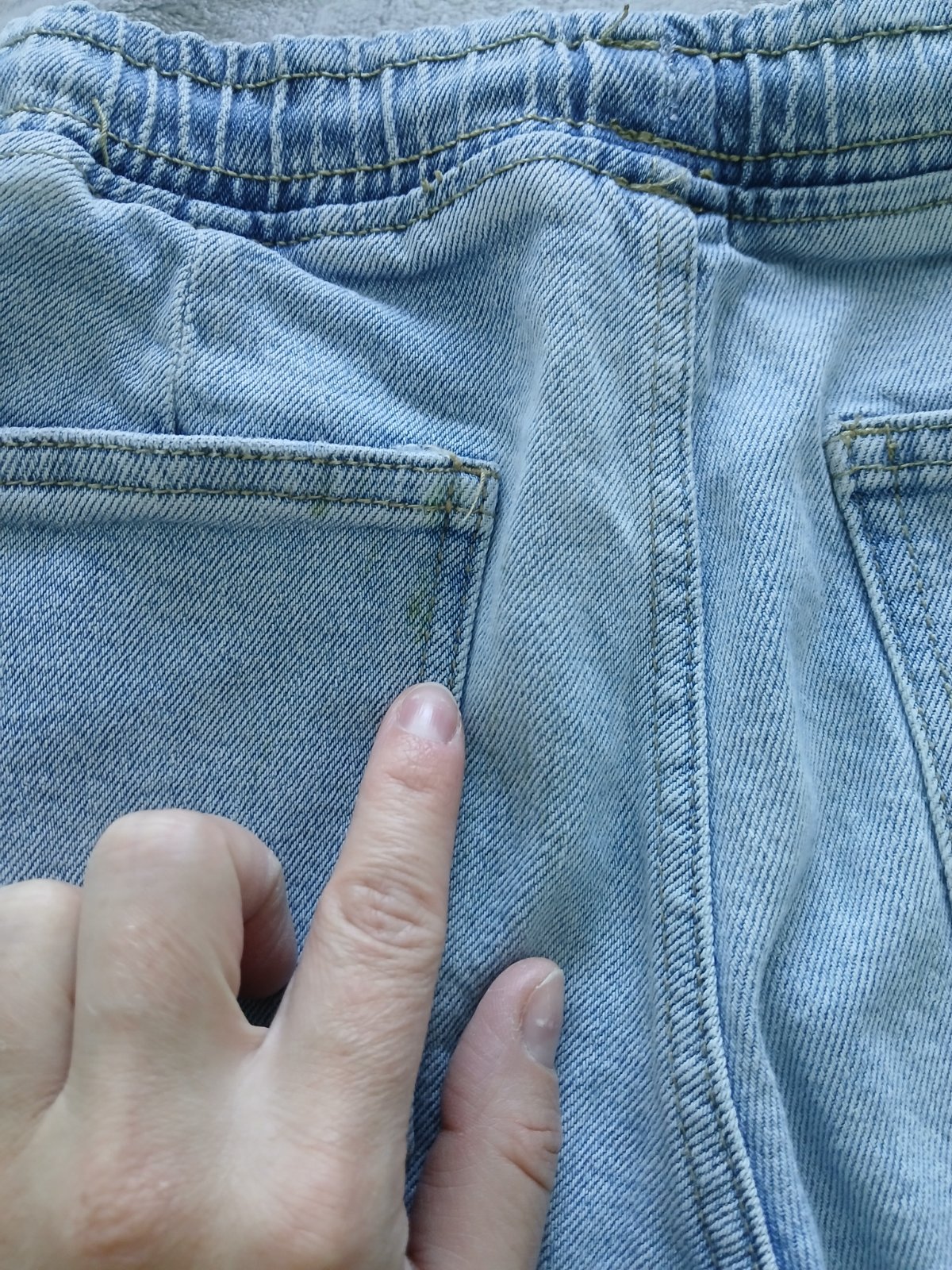 Málo nosené napriek tomu som našla dva menšie fliačiky - na prednej kapse,vzadu na vrecku (dlhšie tricko prekryje). Cena prispôsobená. Rozmery; šírka v páse: 33 cm, 76 cm.
