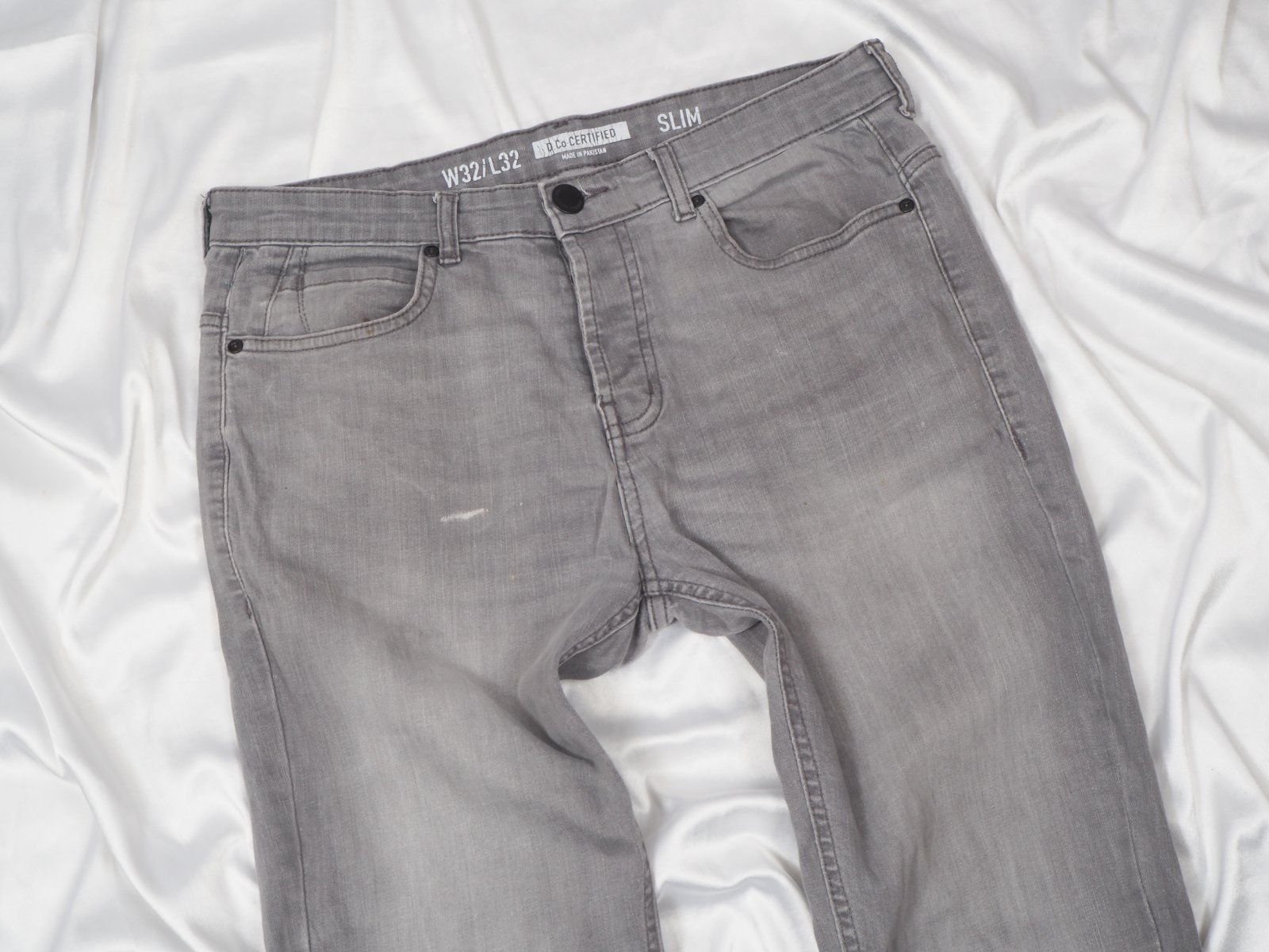 Kvalitné sivé rifle, vyšúchaný vzhľad, zapínanie na gombíky, materiál 98% bavlna, 2% elatan, super stav.
