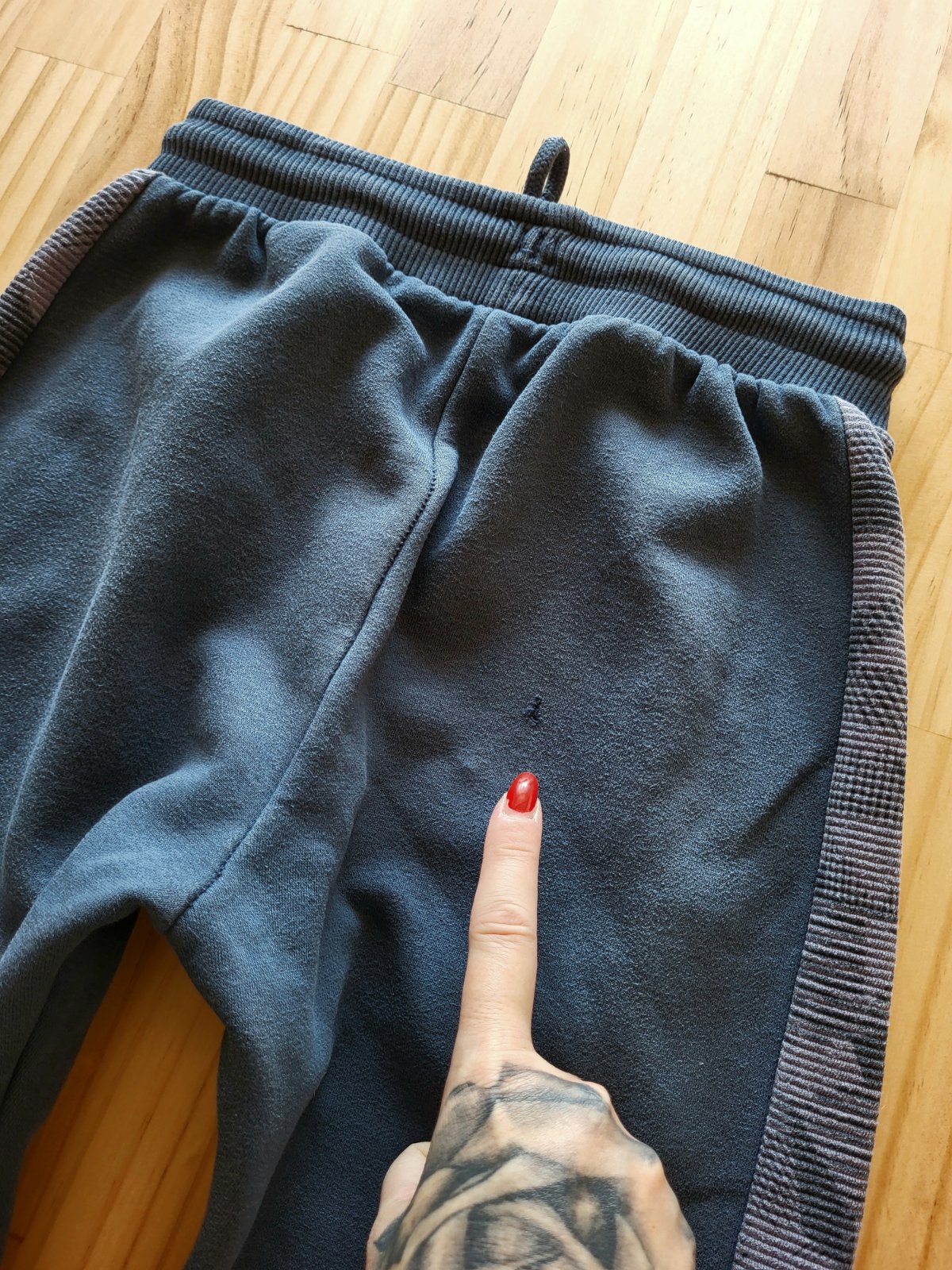 dobrý stav, bočné vačky na zips, mierne vybledlé, mini žmolky, malá dierka pod vačkom a taktiež dierka vzadu na zadku, poštovné doporučene 3,50 €