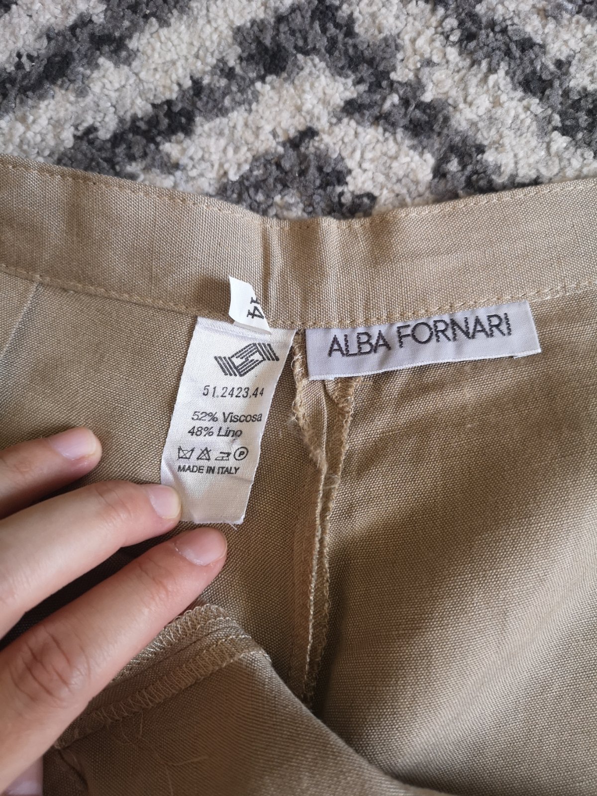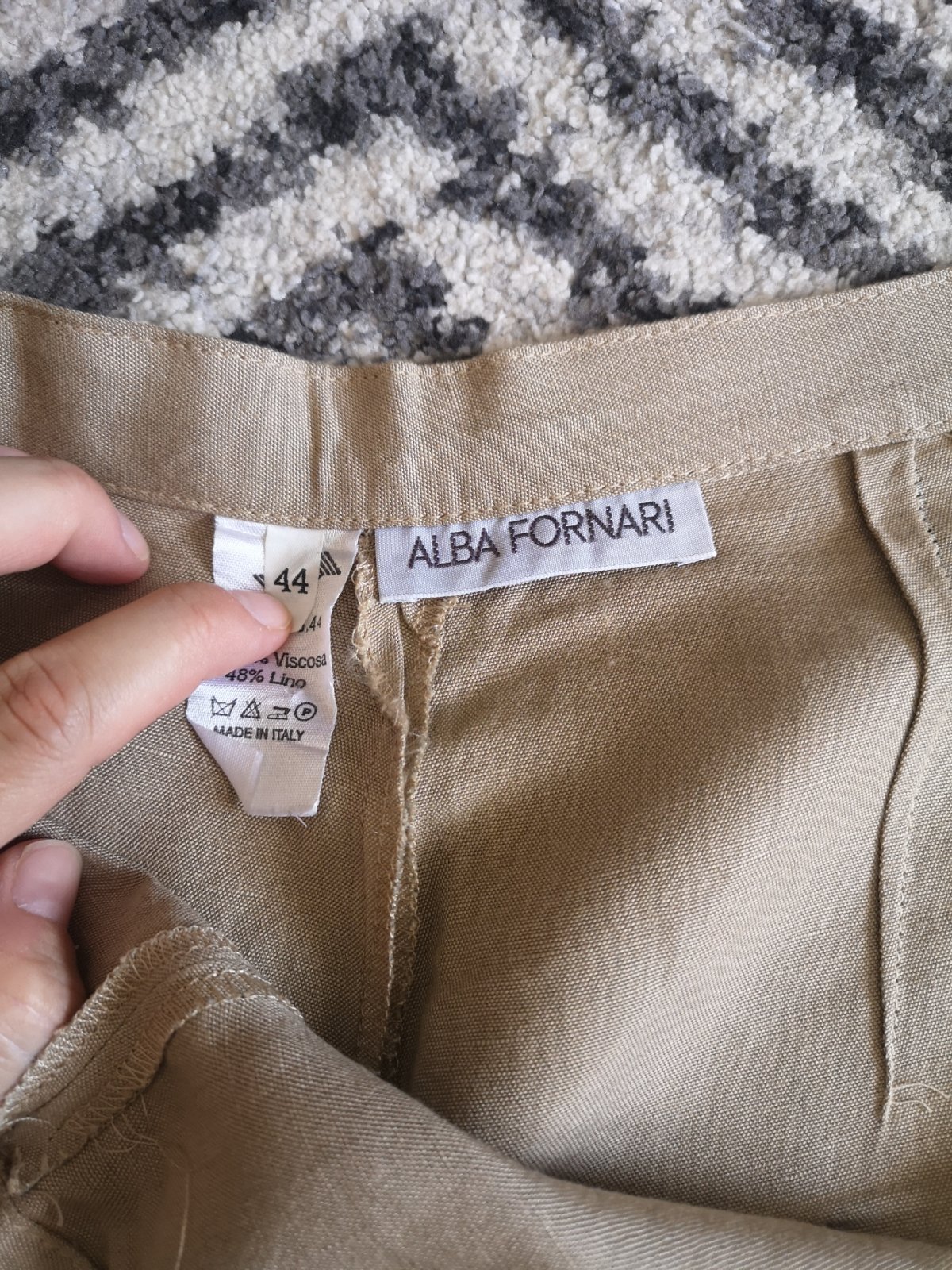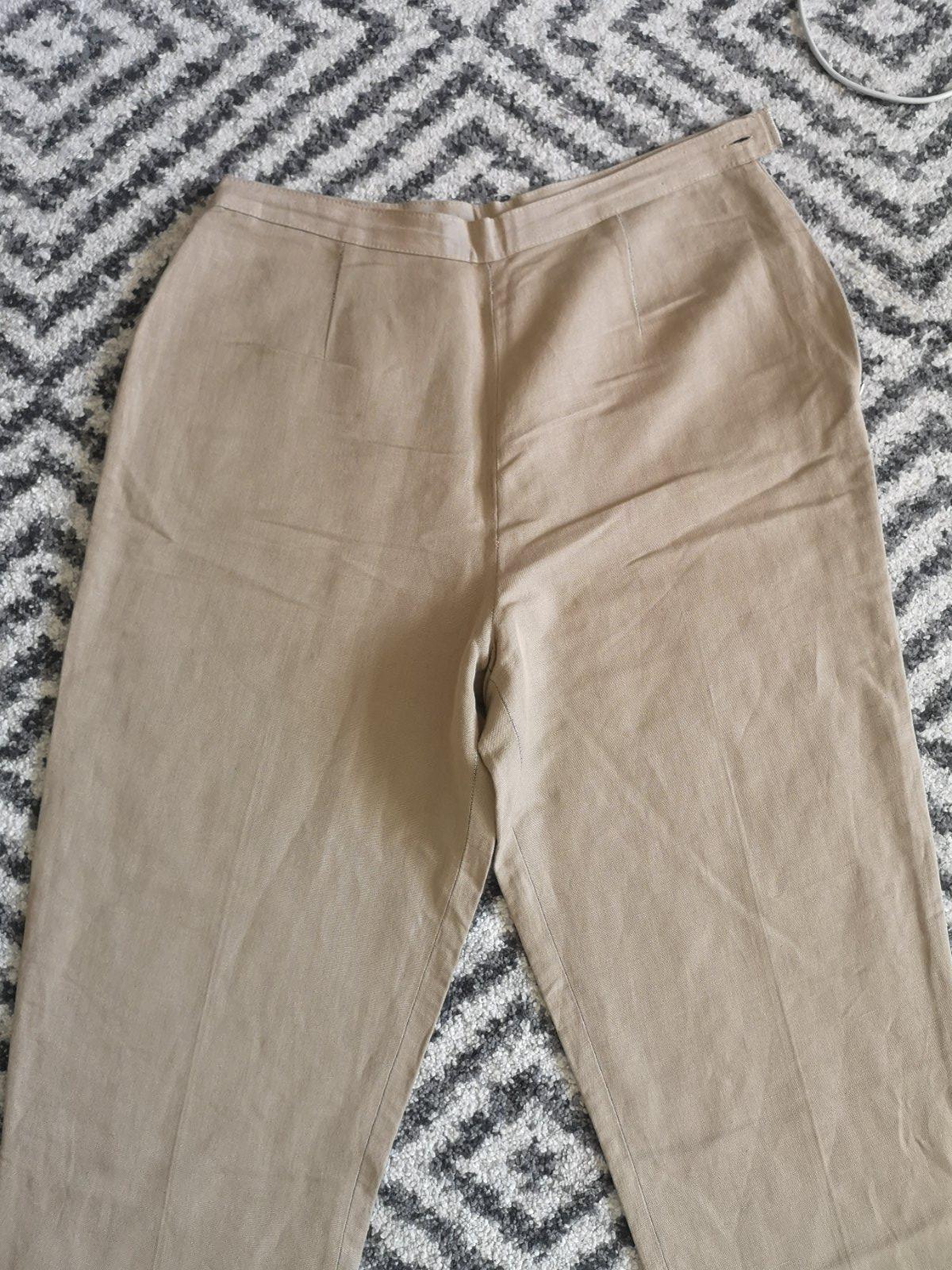 Úžasné ľahké nohavice s vysokým pásom talianskej značky Alba Fornari. Materiál je veľmi príjemný, 52% viskóza, 48% ľan. Na boku majú zips. Určite by som ich nepredávala keby som sa do nich zmestila. Je to zároveň aj vintage kúsok do šatníka.. V prípade záujmu premeriam.