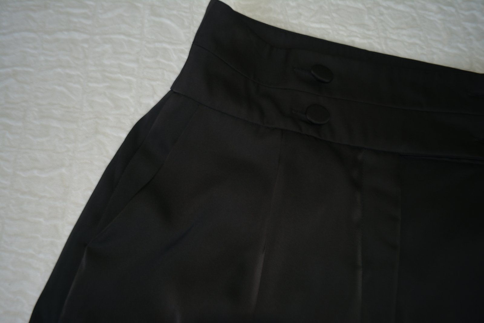 Nohavice sú akoby saténové, padavý materiál, bočné vrecká....