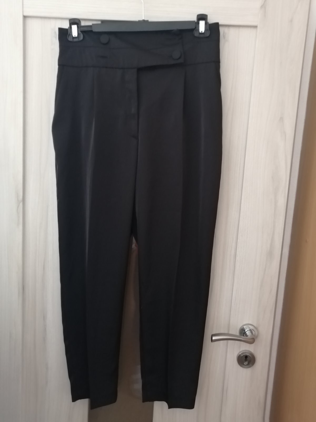 Elegantné nohavice Zara s vysokým pásom, veľ. L - rozmery: bočná dĺžka 102cm, od rozkroku 66cm, pás 2x40cm, predný sed 38cm, zadný sed 47cm.