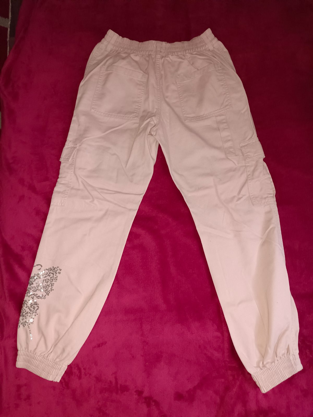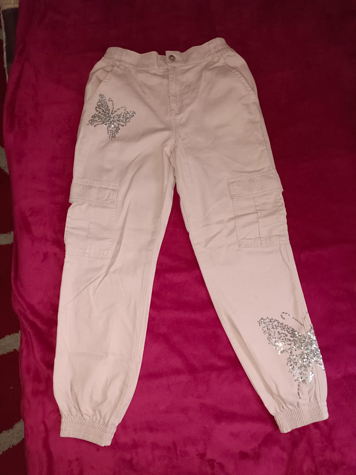 Krásne nohavice, nové akurát bez visačky,keďže sme ich dostali ako darček,ale dcére boli malé.bez poškodenia,materiál pohodlný,mierne elastický.