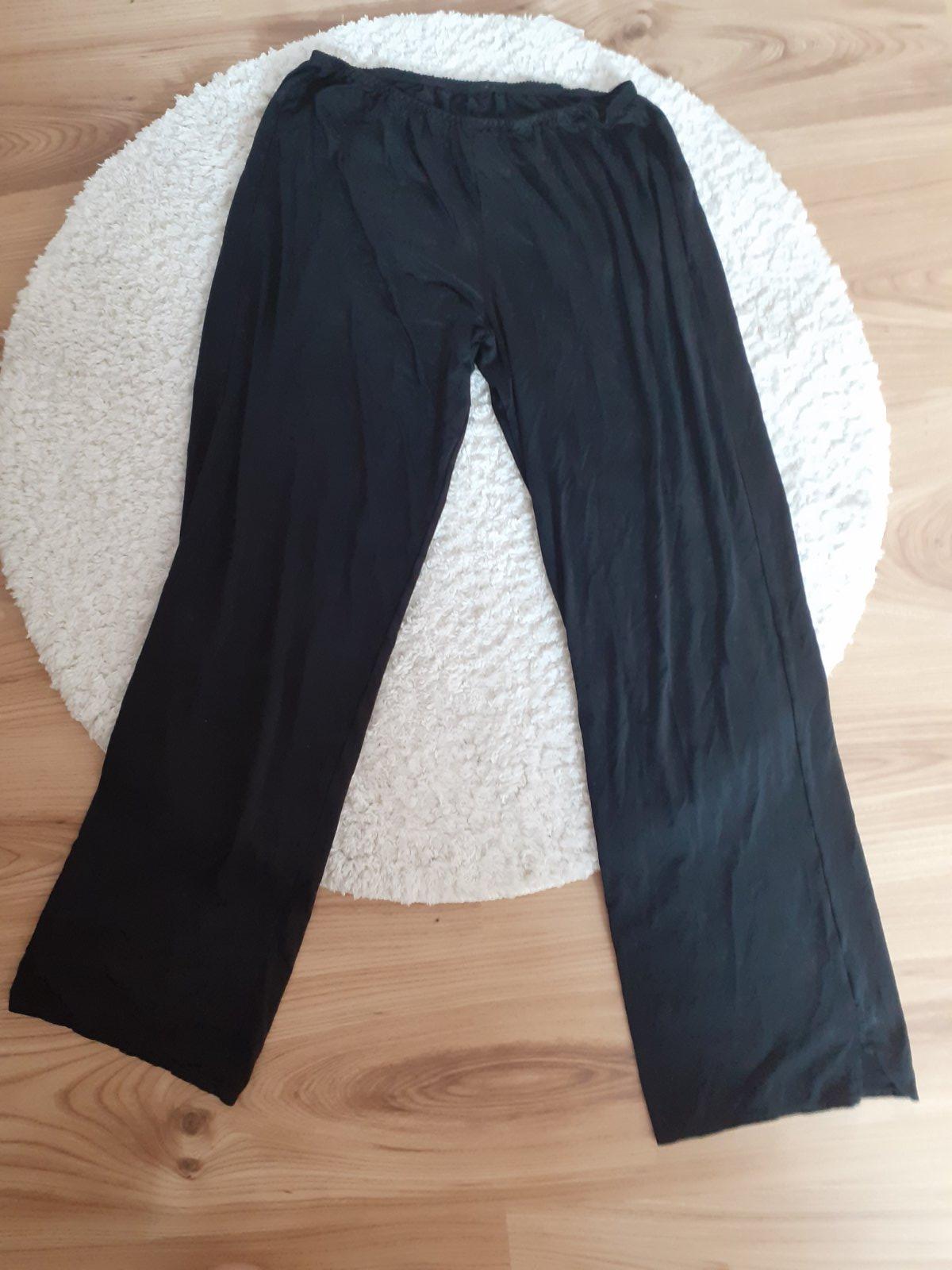 Malinko použ. zachovale.Farba - cierna. Pekný rovný strih.Maju podsivku do polovicu lýtiek. Pas - 2x34cm Boky-2x44 dlžka-103cm od rozkroku 75cm, stehno 2x24cm sed predok 29cm, zadný 33cm