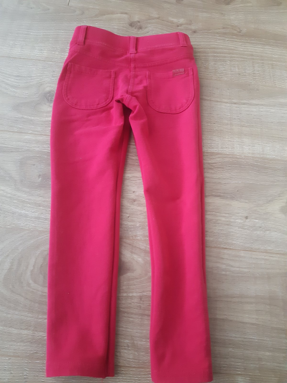 Predám úžasné nohavice sýtoružovej farby,v 104.Farba je oveľa krajšia ako na fotke,zle mi odfotilo.Je to zn.Boboli od Mayoral.Nohavice sú v top stave,bez poškodenia.Sú strečové.Sedia na v 104.