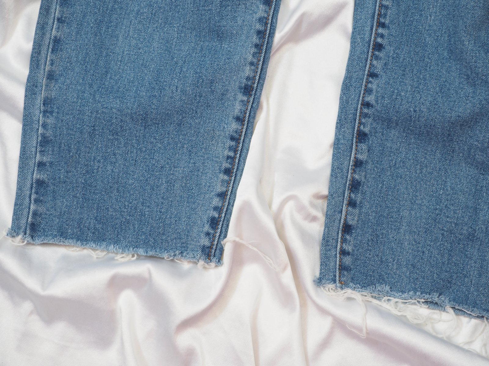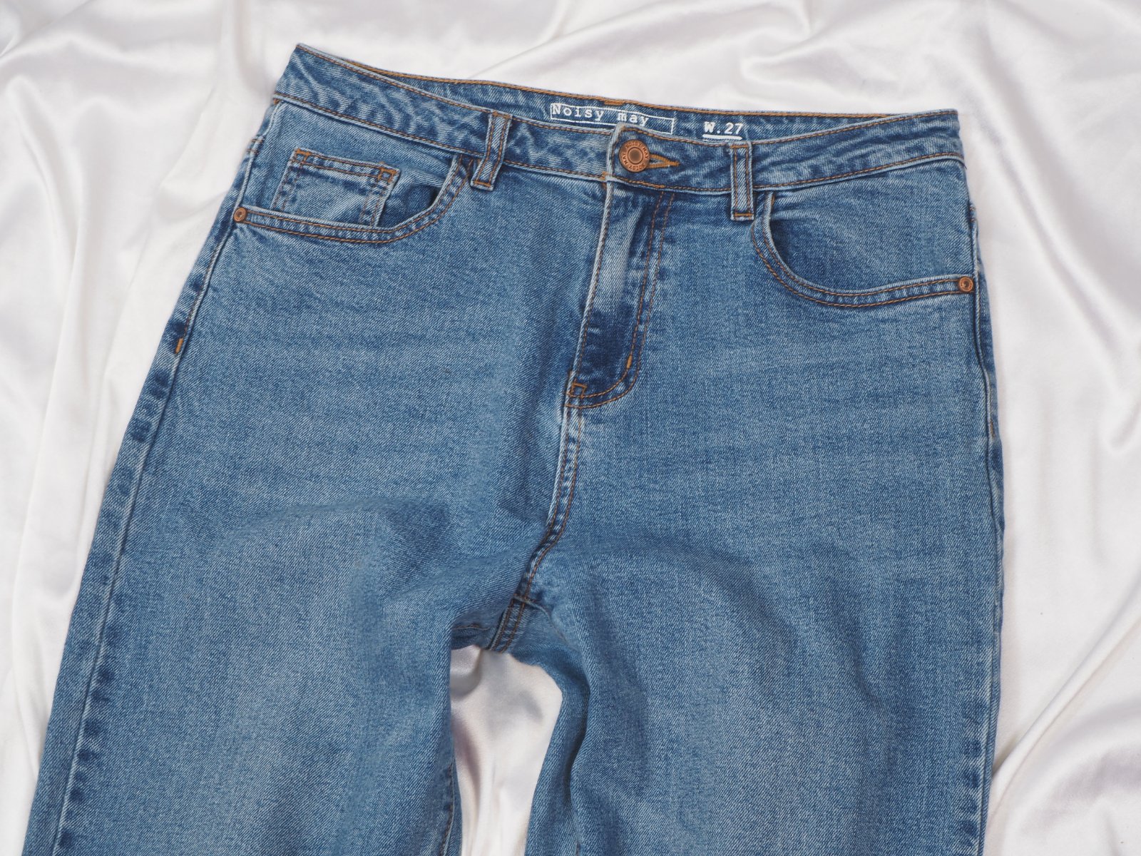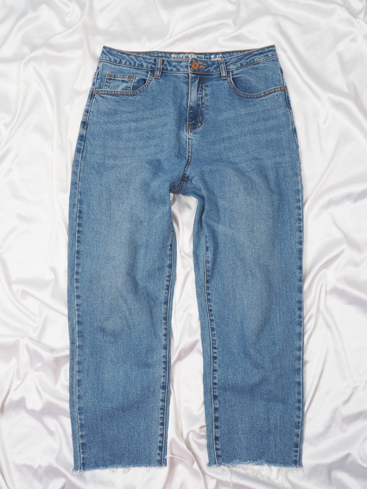 Kvalitné dámske rifle, modrej farby, W27 skrátené, materiál 99% bavlna, 1% elastan, super stav.