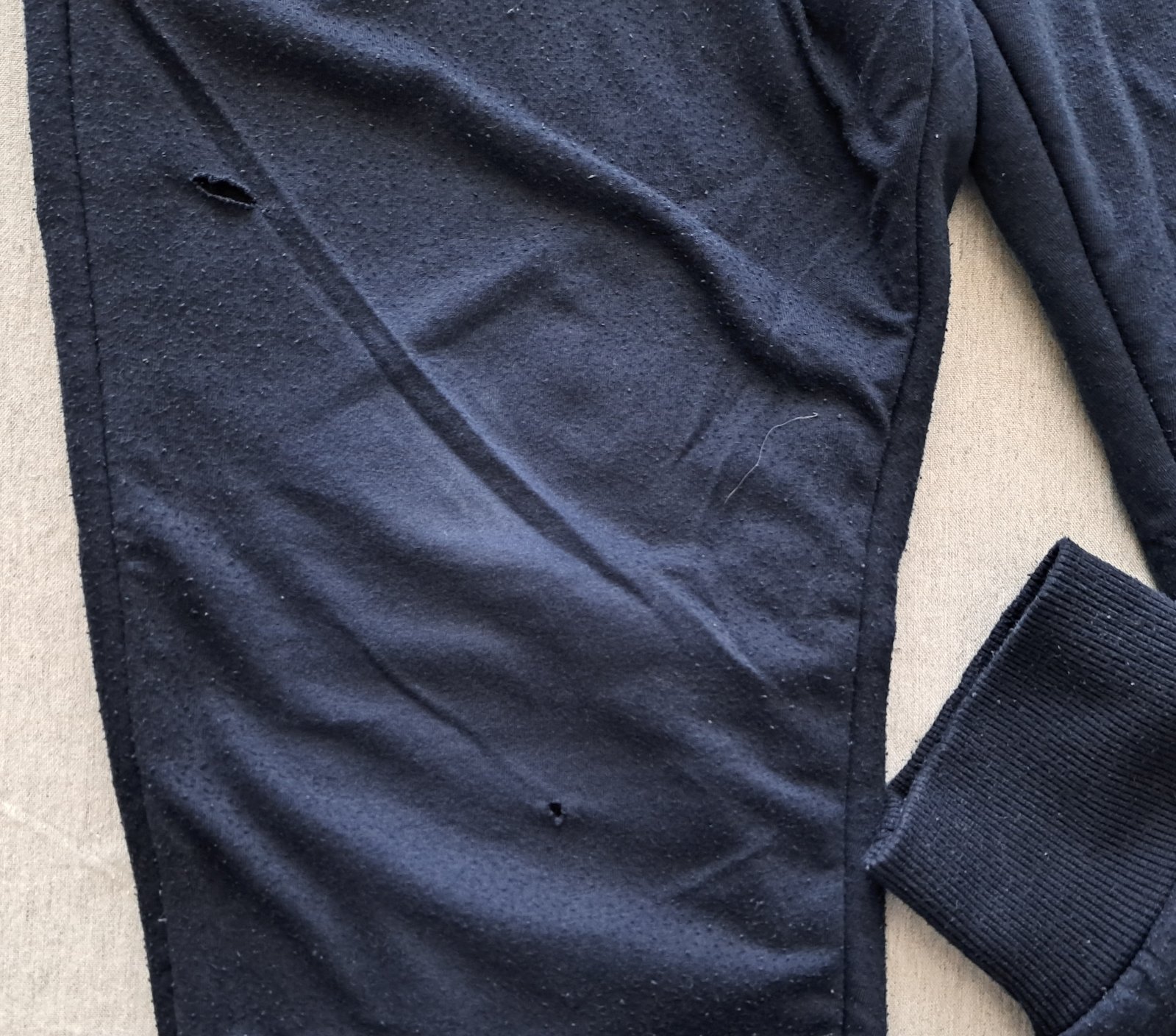 Predám hrubé zateplené tepláky, veľkosť 146, nosený stav - skôr na donosenie (na jednej nohe sú 2 dierky, ale len povrchová látka je prestrihnutá a spodná zateplená látka je neporušená). Farba je zachovalá.