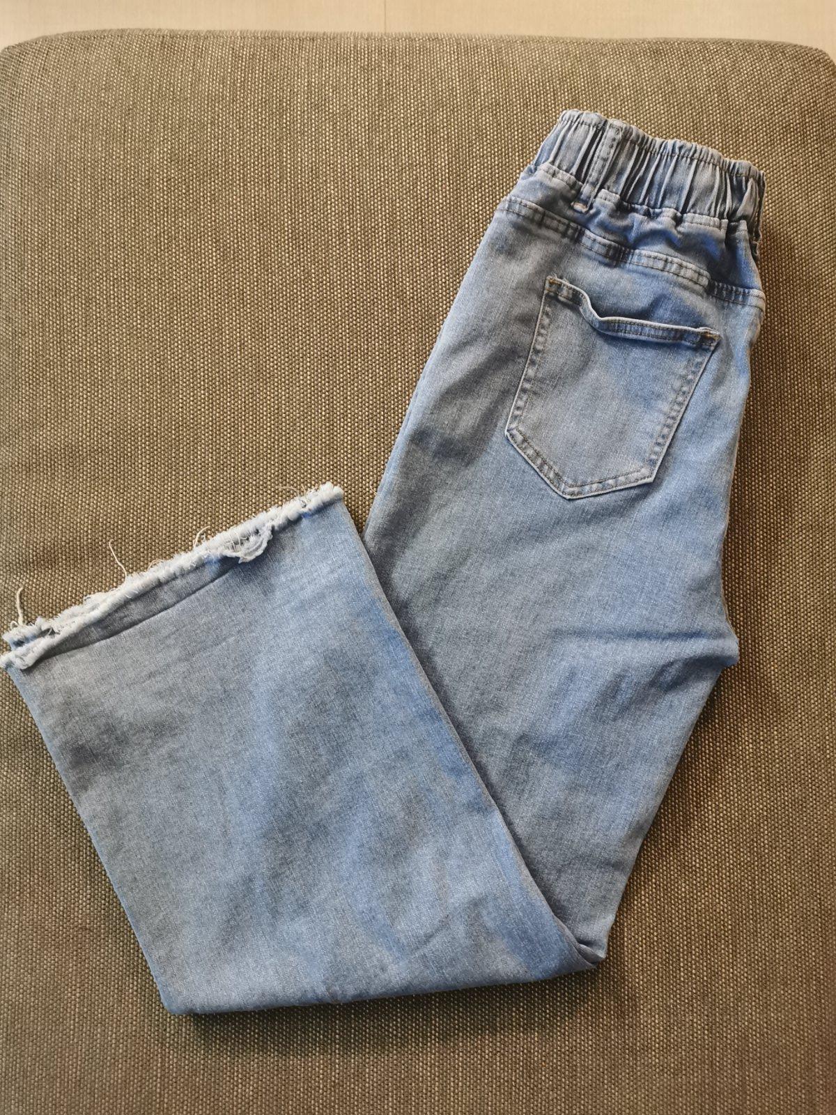 Suprové, mäkké, pohodlné a elastické, v páse je guma. Vonkajšia dĺžka je 94cm, spodná šírka nohavice je 2x25cm, pás 2x33/43cm. V ponuke mám aj tmavomodré.