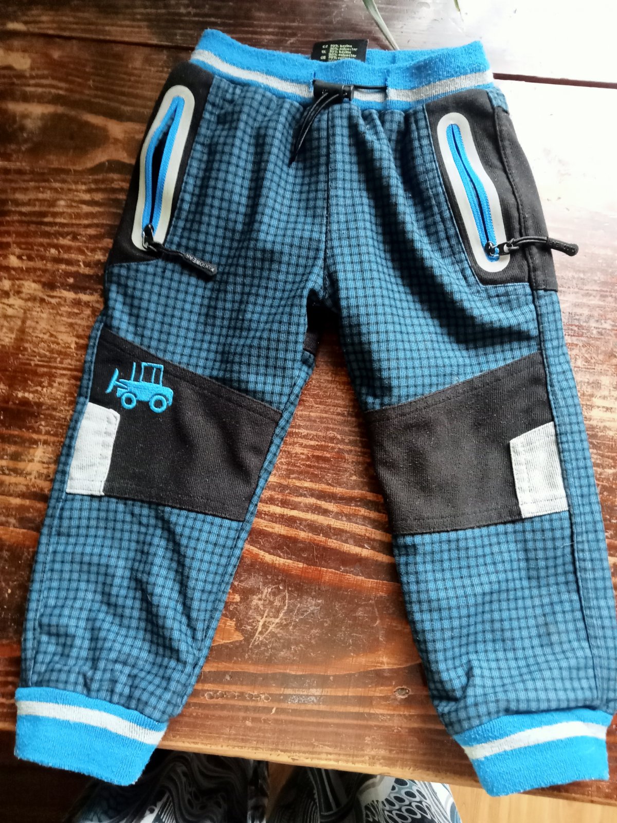Zateplené nohavice pre chlapčeka na zimu,chladnú jeseň.Sú vhodné na suchú zimu,nie do snehu.Piše veľkosť 86 ale sú väčšie.Nie sú na zapínanie,majú gumu so šnúrkou na stiahnutie.Cena:6e plus poštovné.