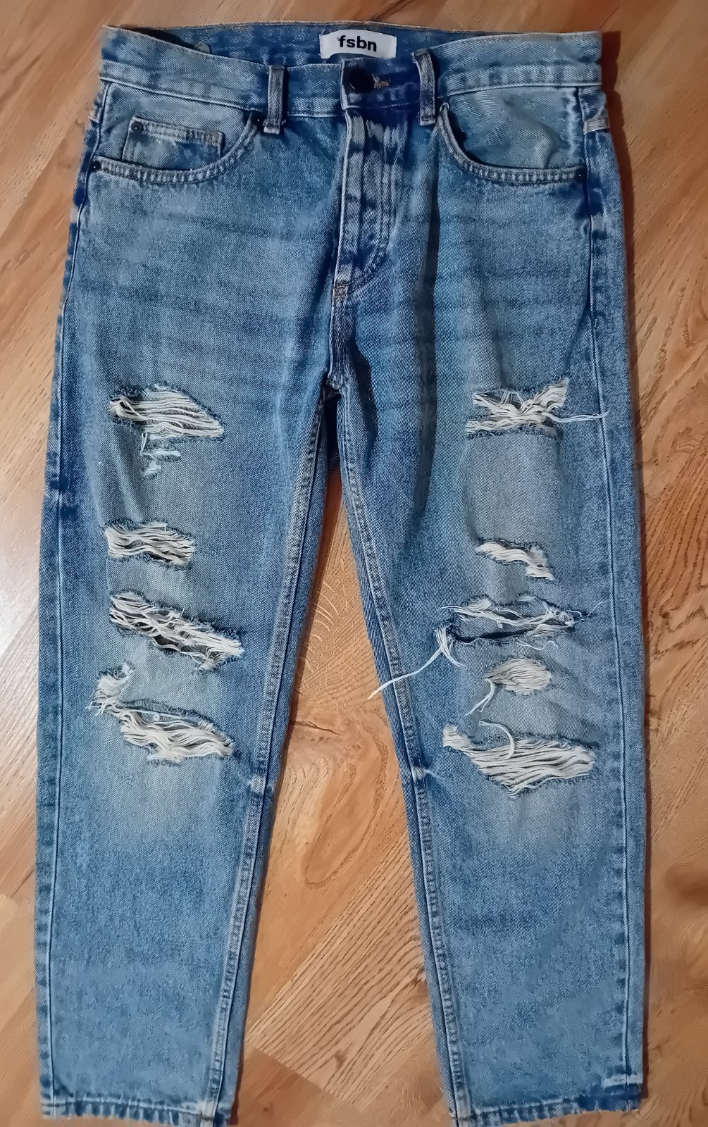 Moderné roztrhané rifle,100% stav.FSBN.Pás 86cm,dĺžka 100cm