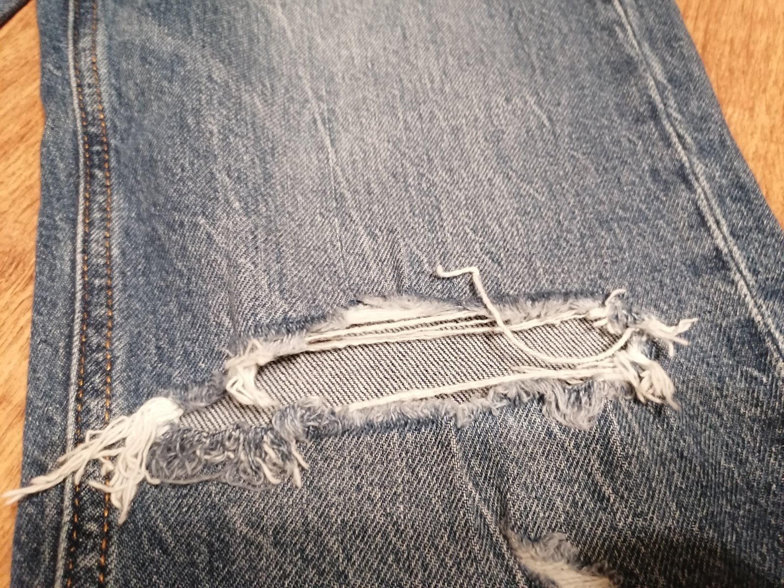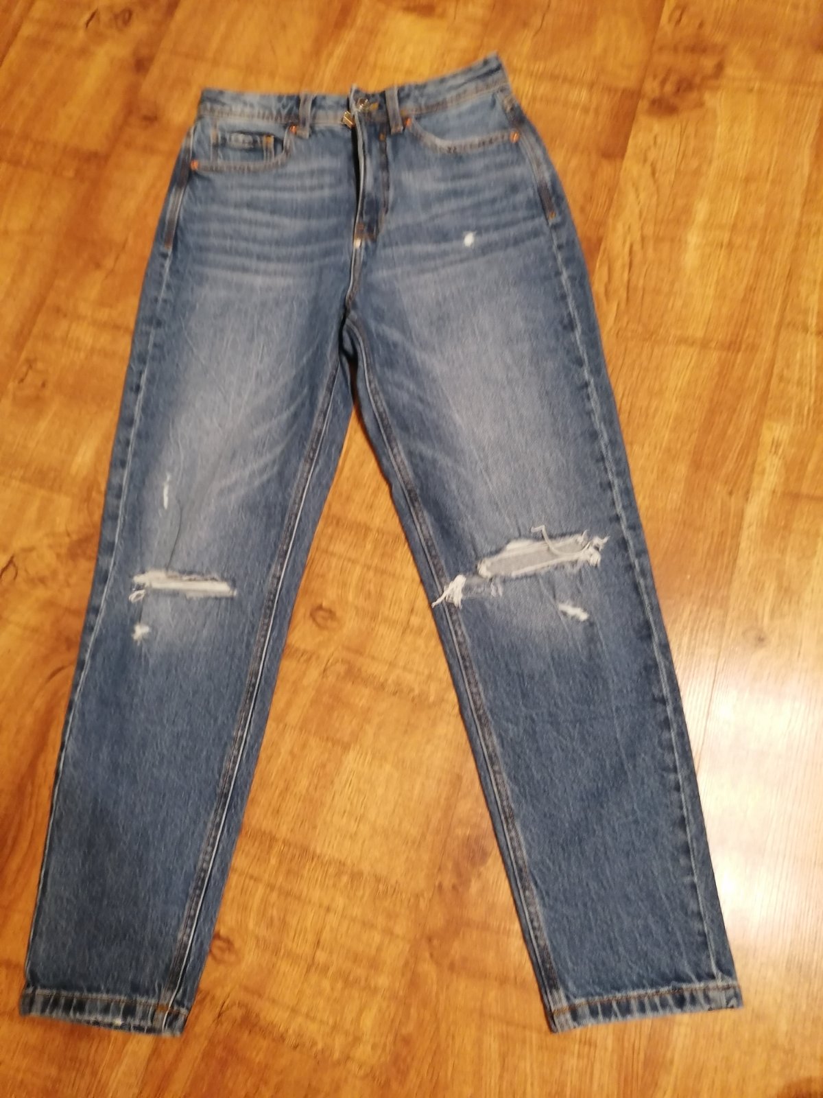 Veľmi pekne, minimálne nosené, elastické rifle, roztrhaný vzhľad, vyšívané. Rozmery Obvod pása 35×2 Dĺžka riflí 92