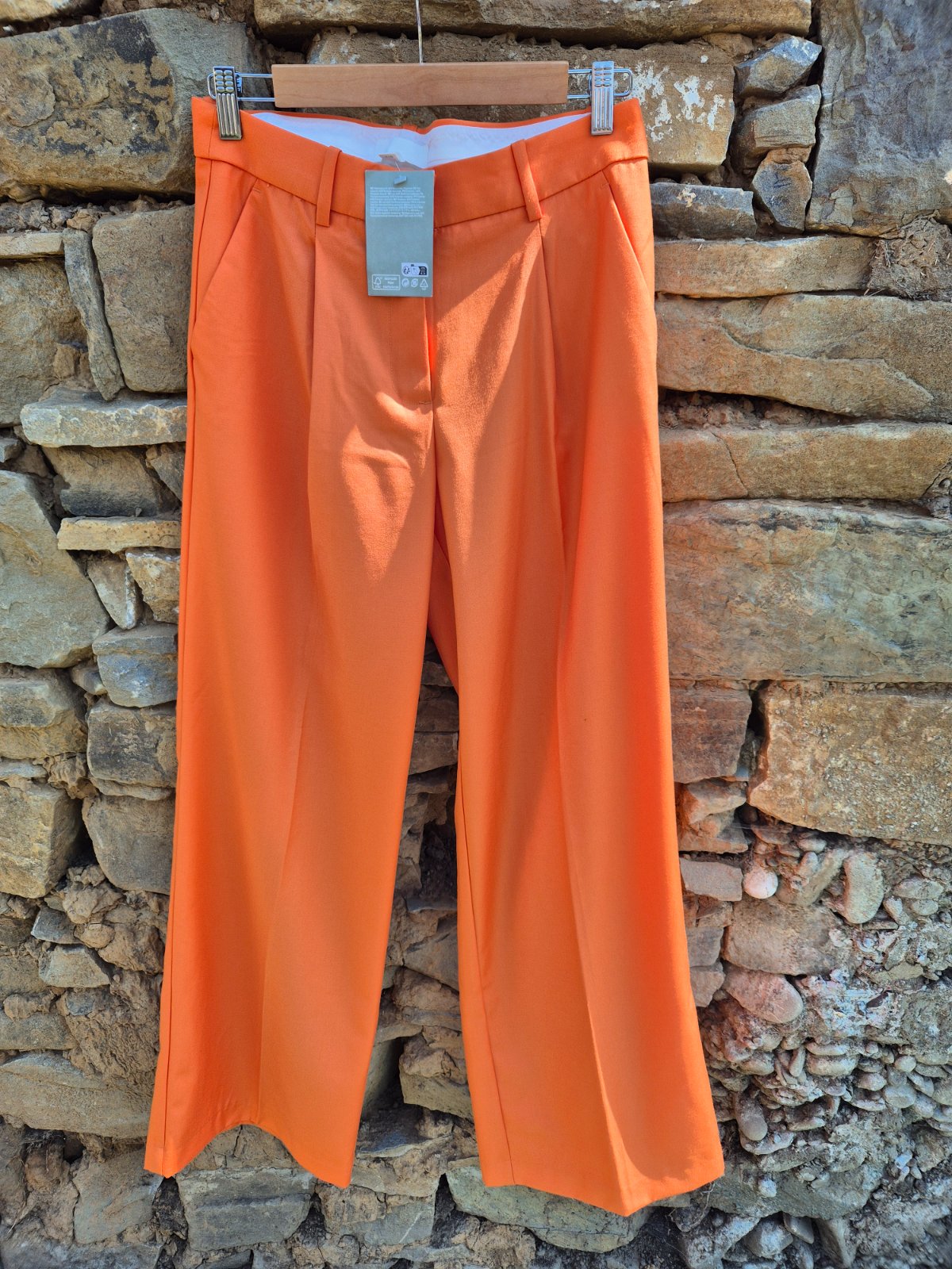 Elegantné oranžové nohavice s vysokým pásom