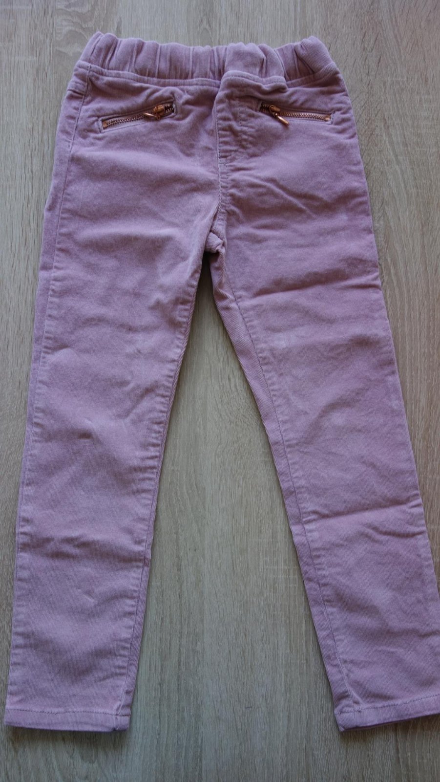 Ako nové menčestráky, farba je taká staroružová. Sú len vyskúšané, dcérke nesadol strih, tak sme ich nevynosili.