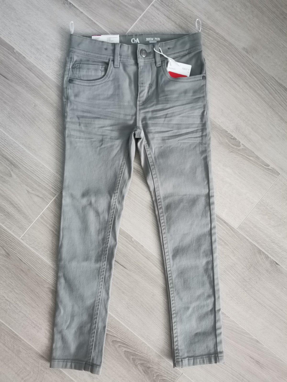 Hnedé 134ky skrátene u krajcirky na veľkosť 122, sú trosku teplejšie vid fotku - jeseň - zima, rifle 128ky skrátene na 122ky. Obe bez flakov a poškodení s regulovaciou gumičkou v pase. Dĺžka 67-6...