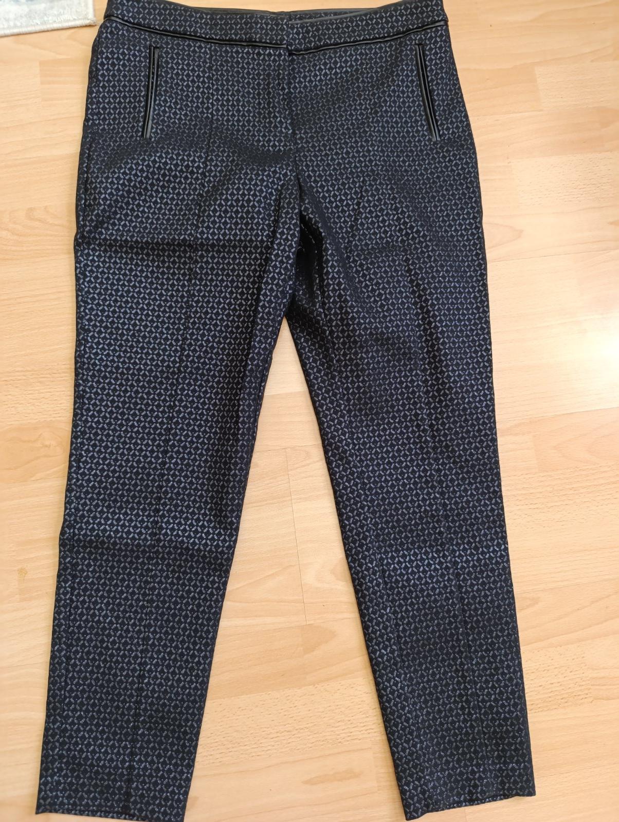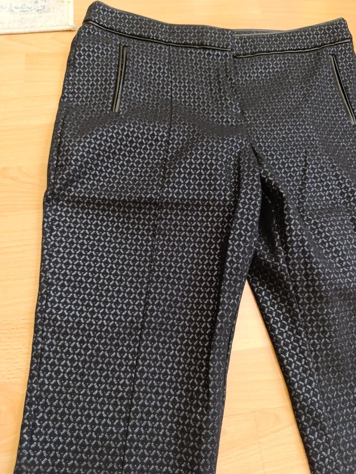 Čierne nohavice so striebornou lurexovou nitkou, veľmi elegantné, s elastanom. Pás 43-44 x2, dĺžka 94, predný sed 27 cm ,zadný 40, stehno 30,5 až 33x2, šírka dole 14,5 x2