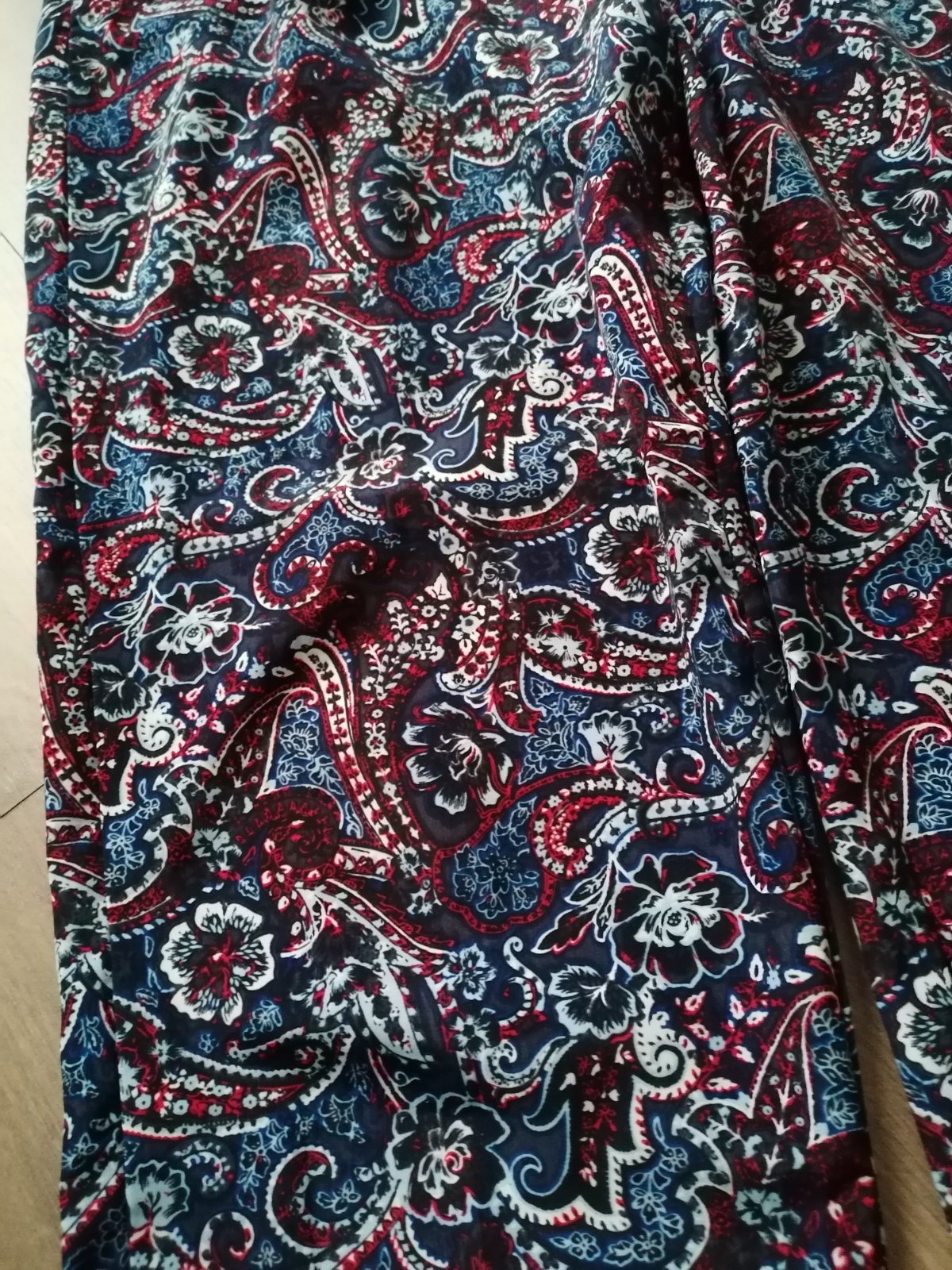 Ľahučké letné nohavice, v páse hrubá guma. Príjemné na leto s tielkom/tričkom, chladiva látka, nie bavlna. Pas v kľude šírka 38 cm, dĺžka 98 cm.